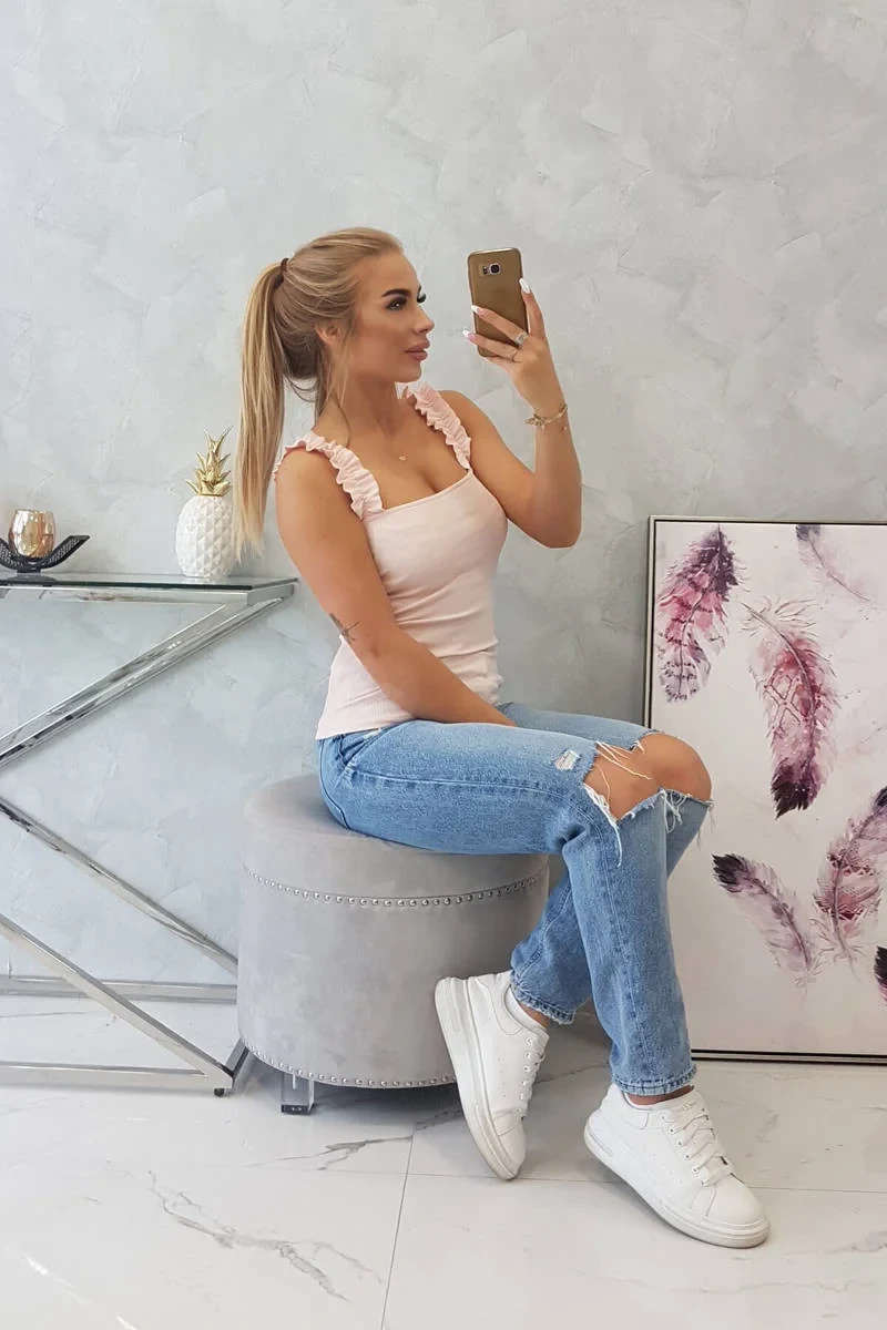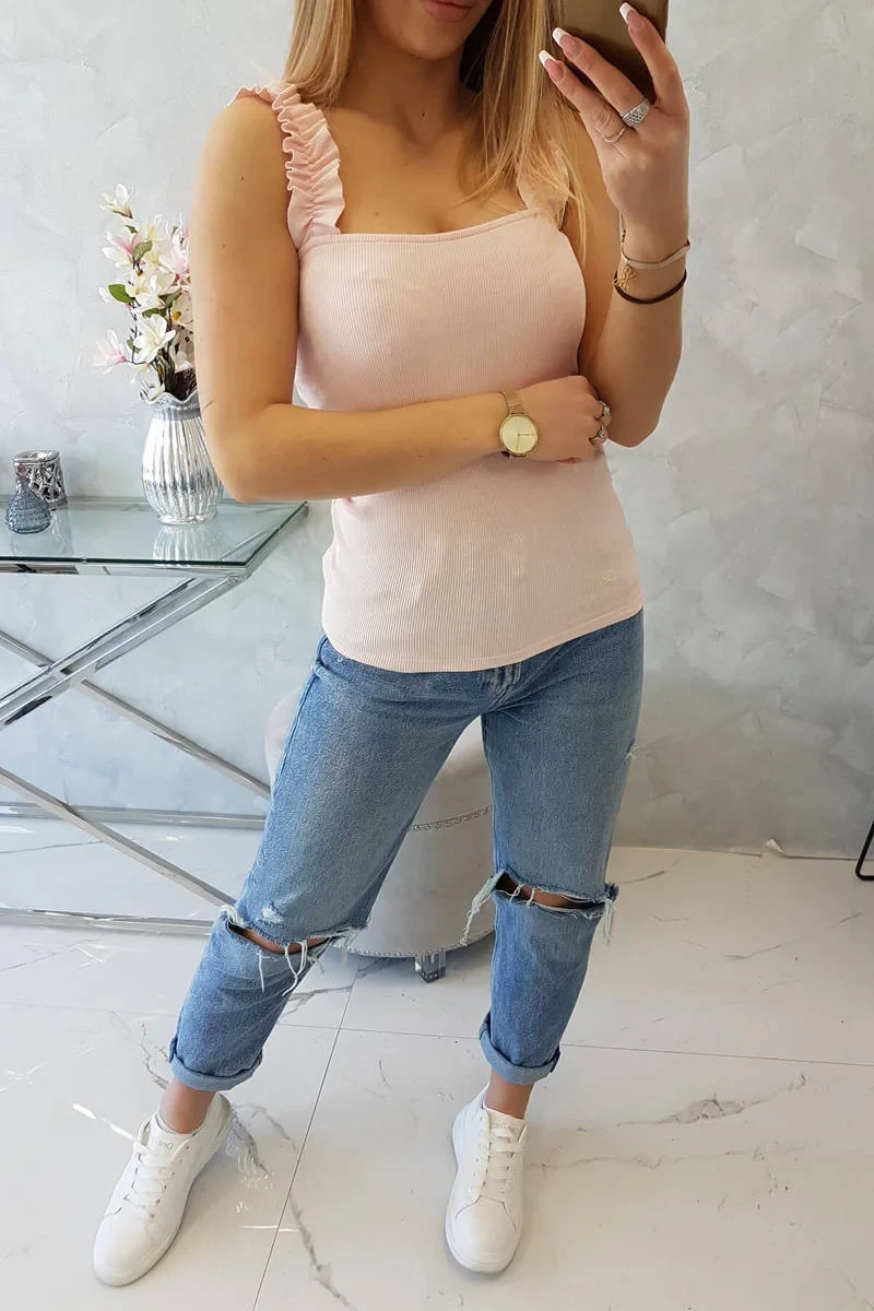 Halenka bez ramínek s volánky, pudrově růžová