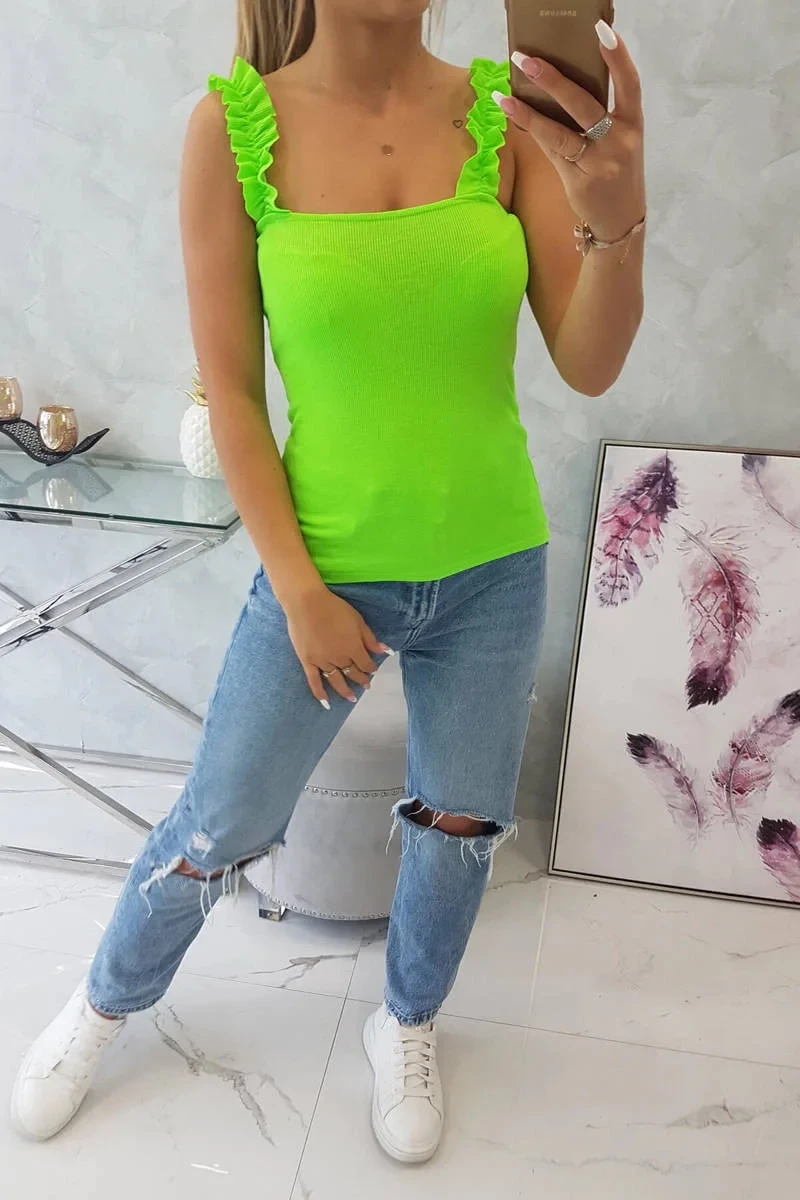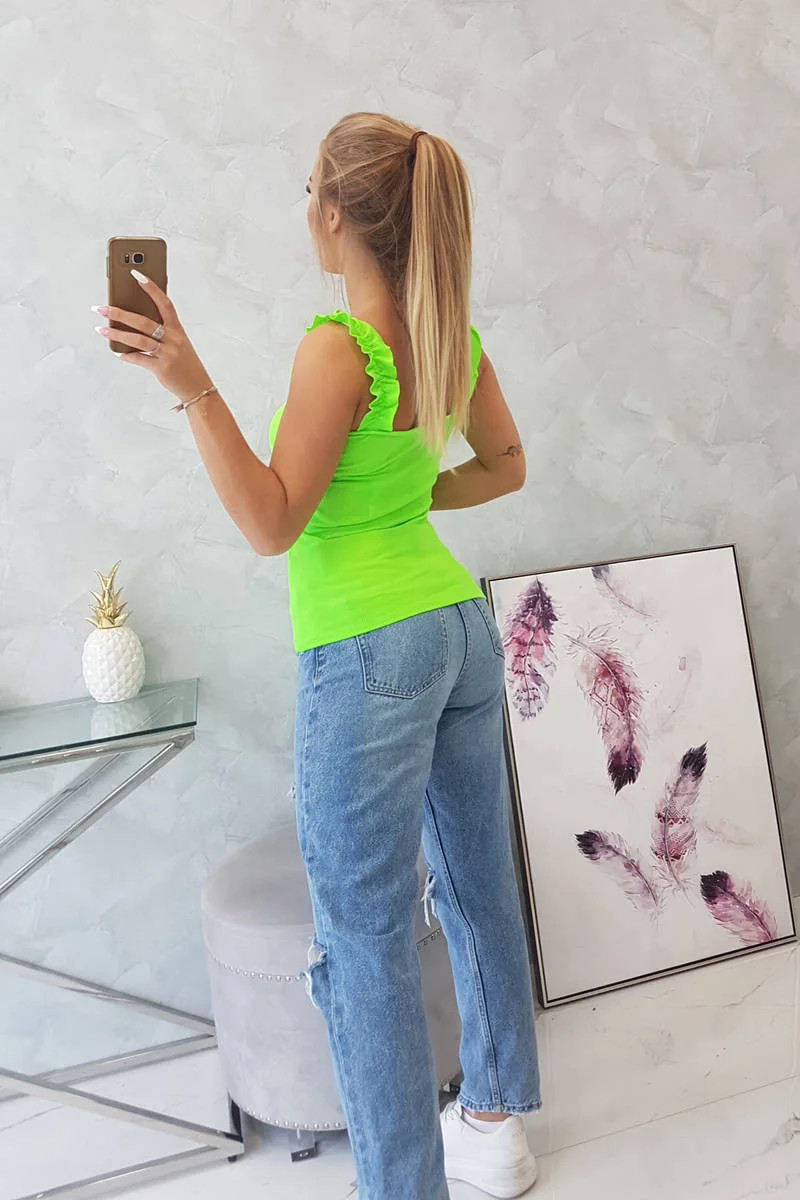 Halenka bez ramínek s volánky zelená neonová
