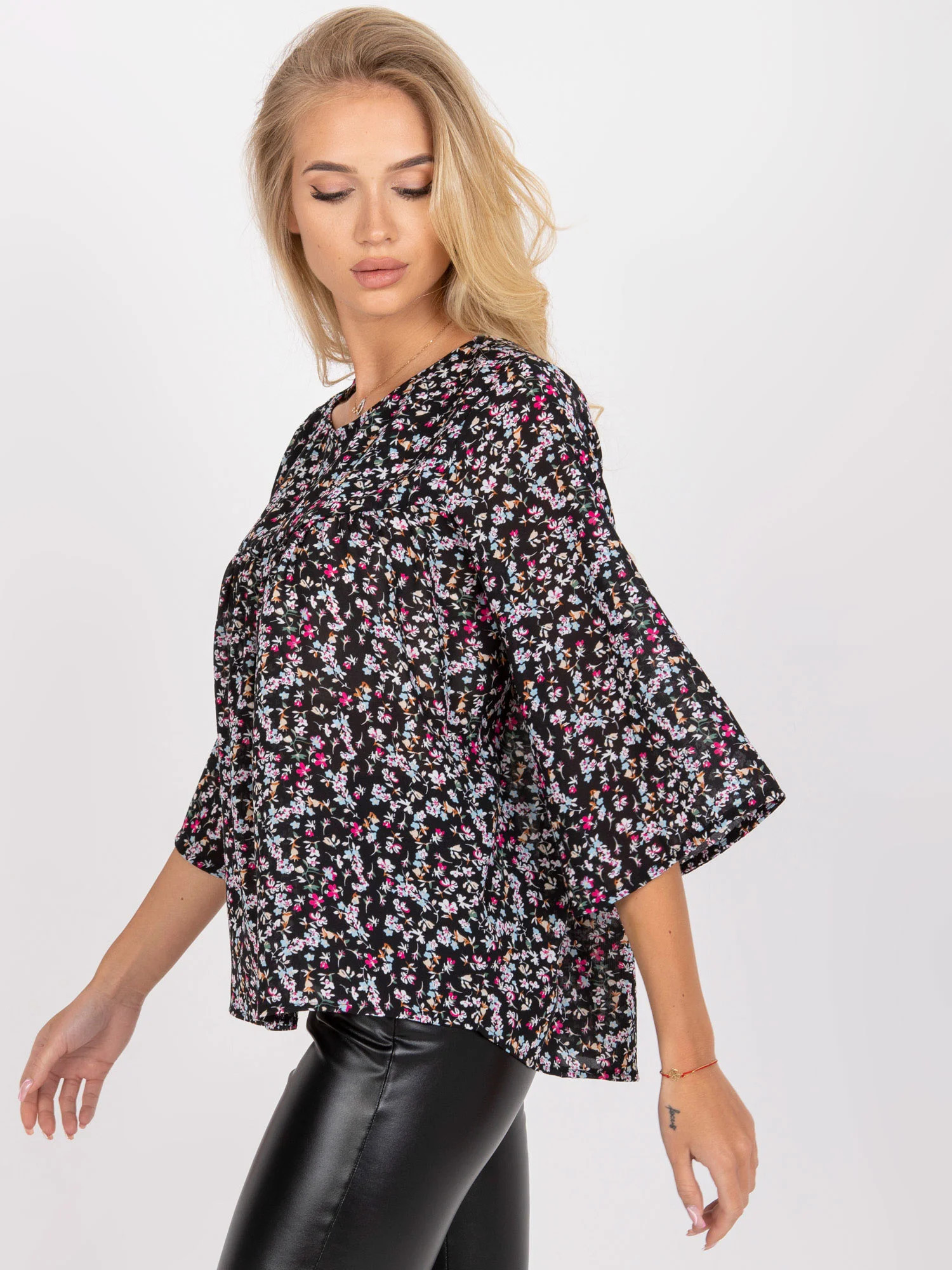 Rozměry halenky ve velikosti S měřené na plocho: šířka v podpaží - 54 cm, celková délka - 64 cm, délka rukávu - 44 cm.