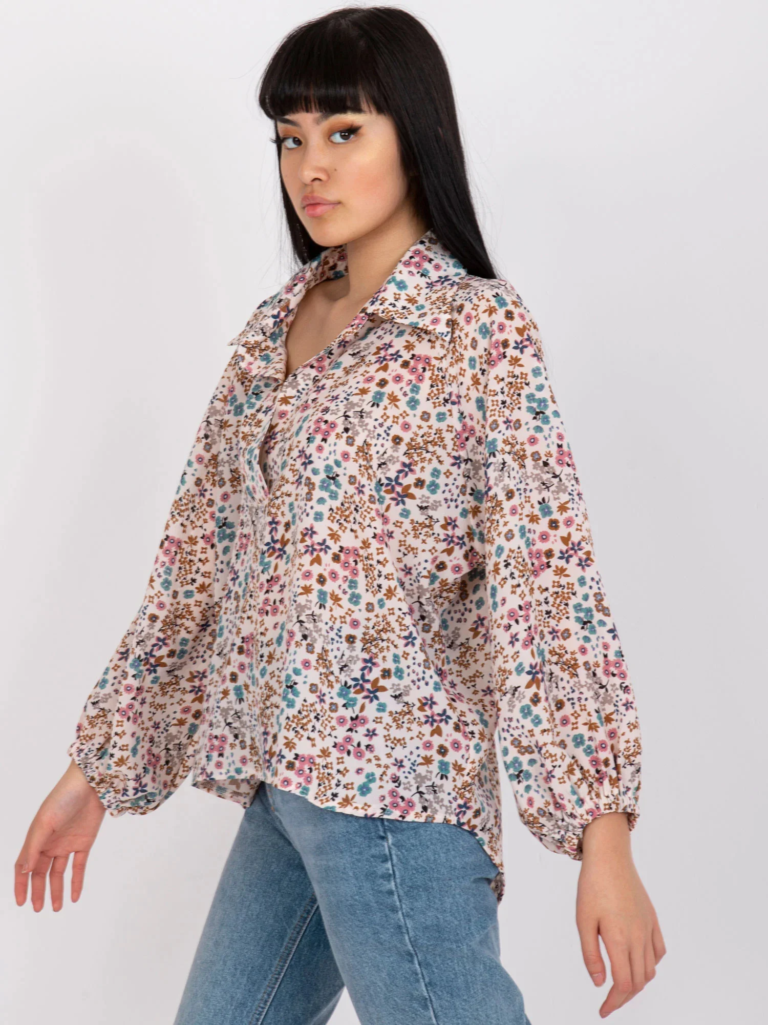 Rozměry halenky ve velikosti S měřené na plocho: šířka v podpaží - 61 cm, celková délka (vpředu) - 55 cm, celková délka (vzadu) - 70 cm, délka rukávu - 51 cm.