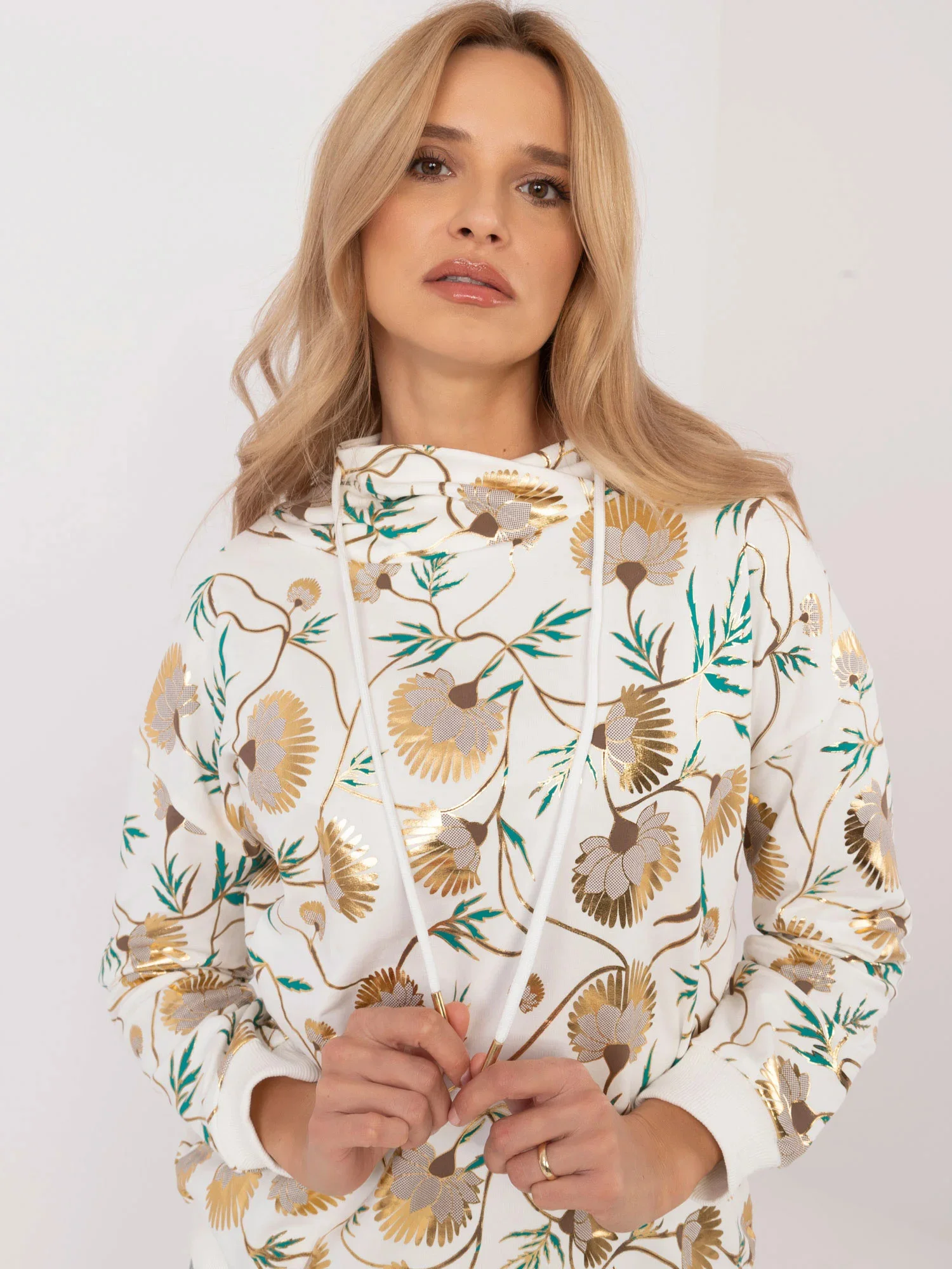 Wymiary bluzy w rozmiarze S mierzone na płasko: szerokość pod pachami - 58 cm, długość bluzy - 63 cm, długość rękawa - 44 cm (od szwu),