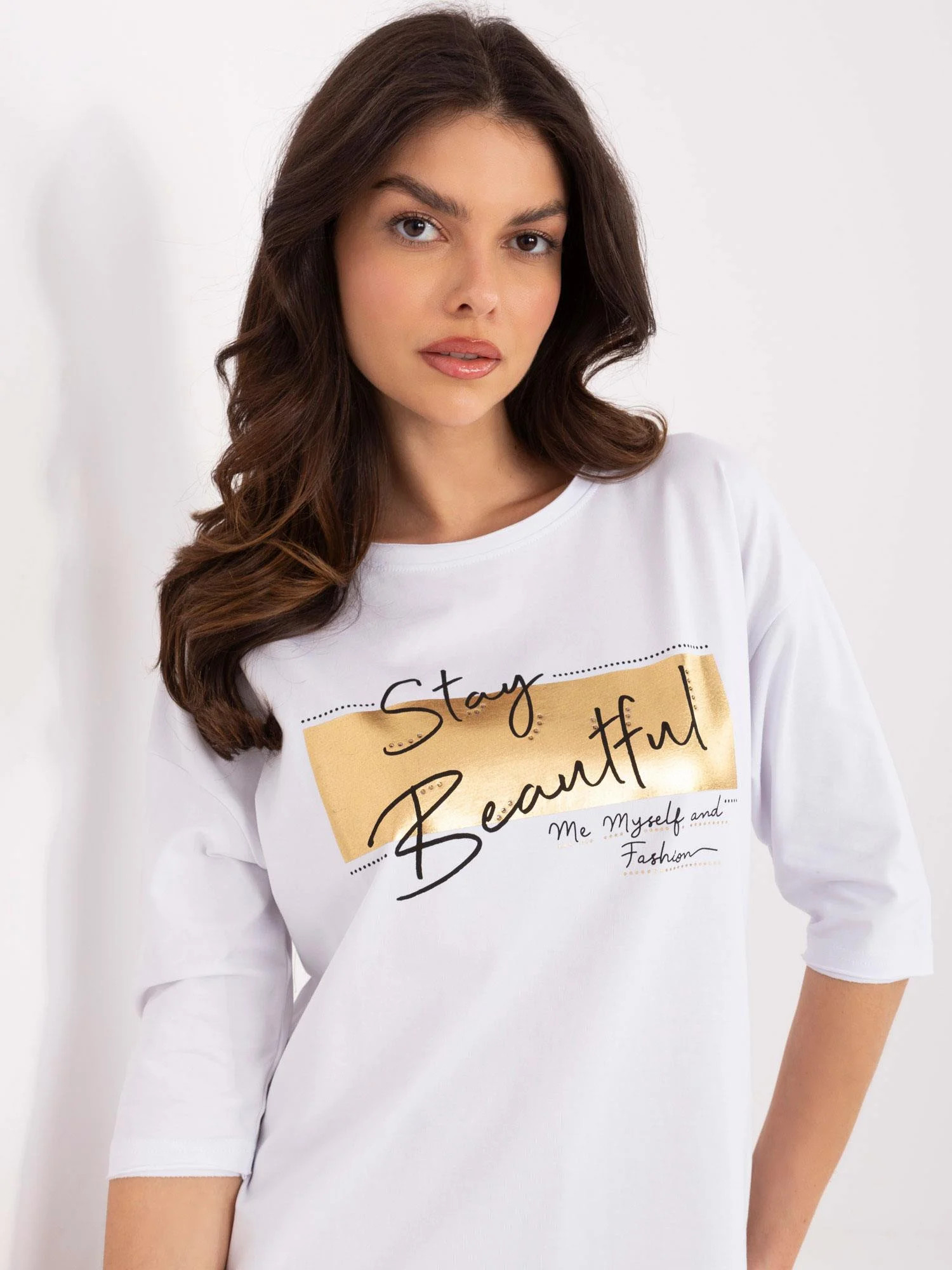 Rozměry halenky v jedné velikosti měřené naplocho: šířka v podpaží - 53 cm, délka rukávu - 27 cm (od švu), celková délka - 58 cm, šířka v bocích - 53 cm (naplocho).