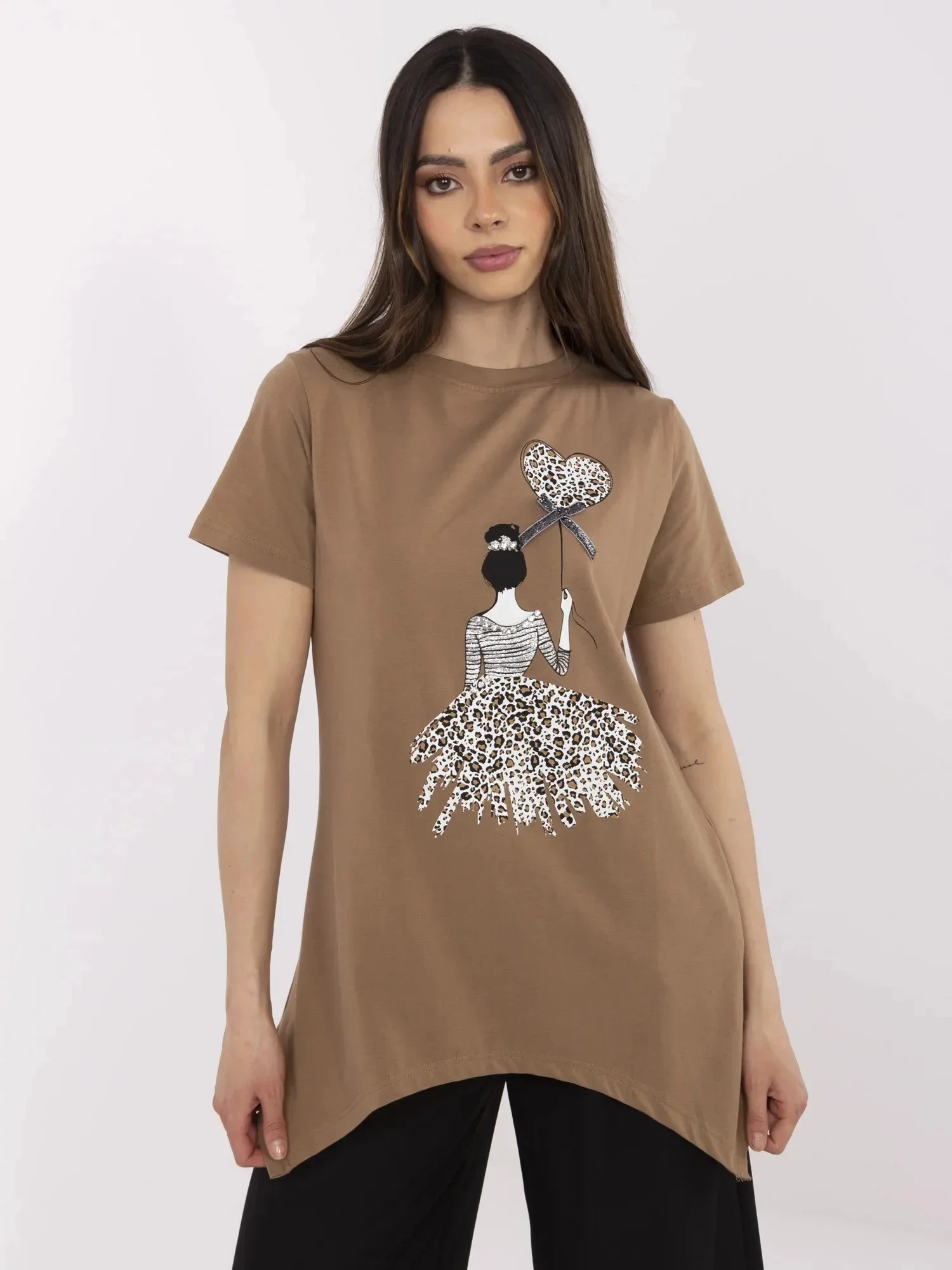 Modelka má na sobě velikost S. Rozměry modelky: výška 175 cm, prsa 90 cm, pas 66 cm, boky 94 cm.