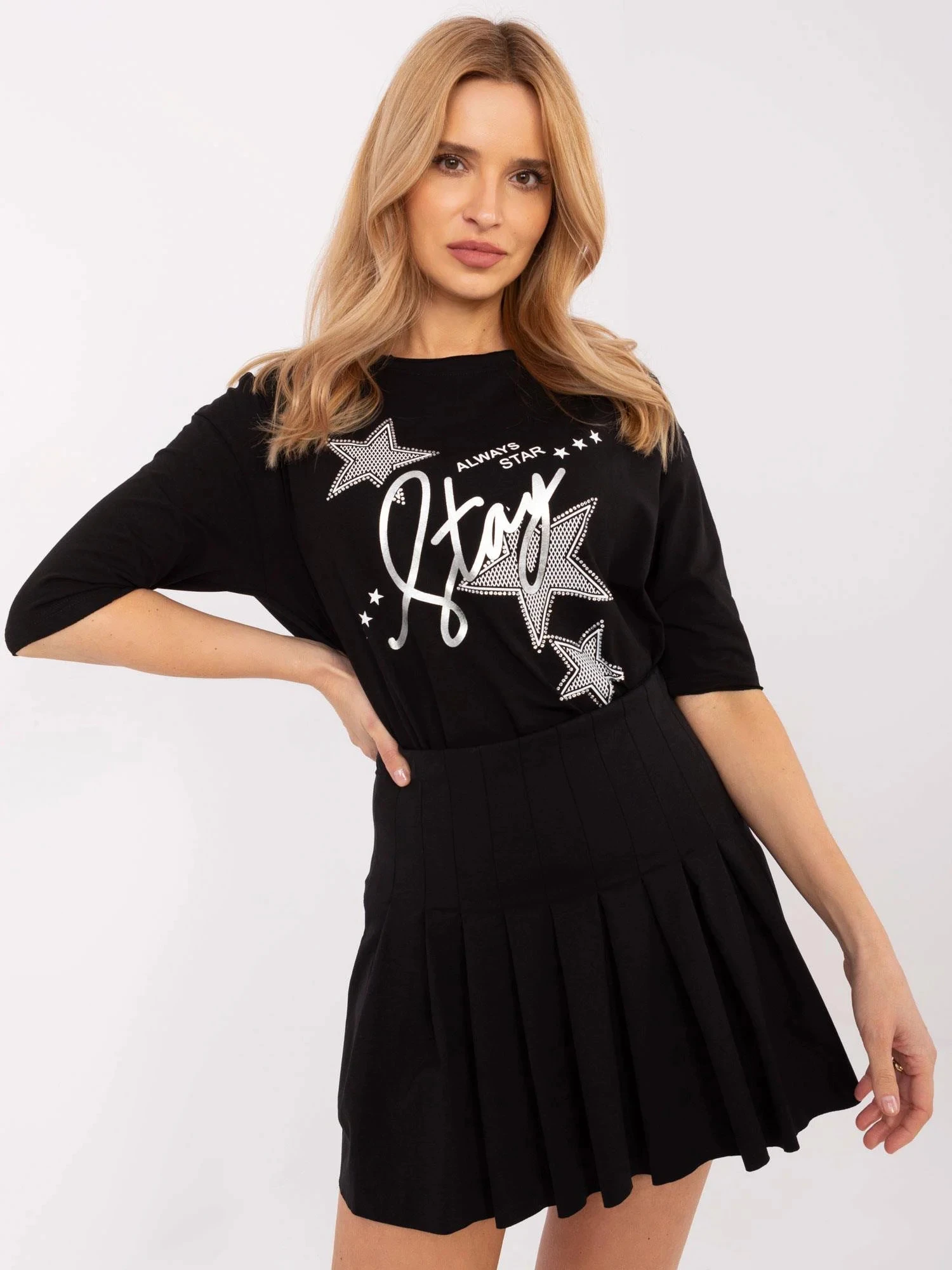 Dámská krátká halenka, třičtvrteční rukávy, potisk