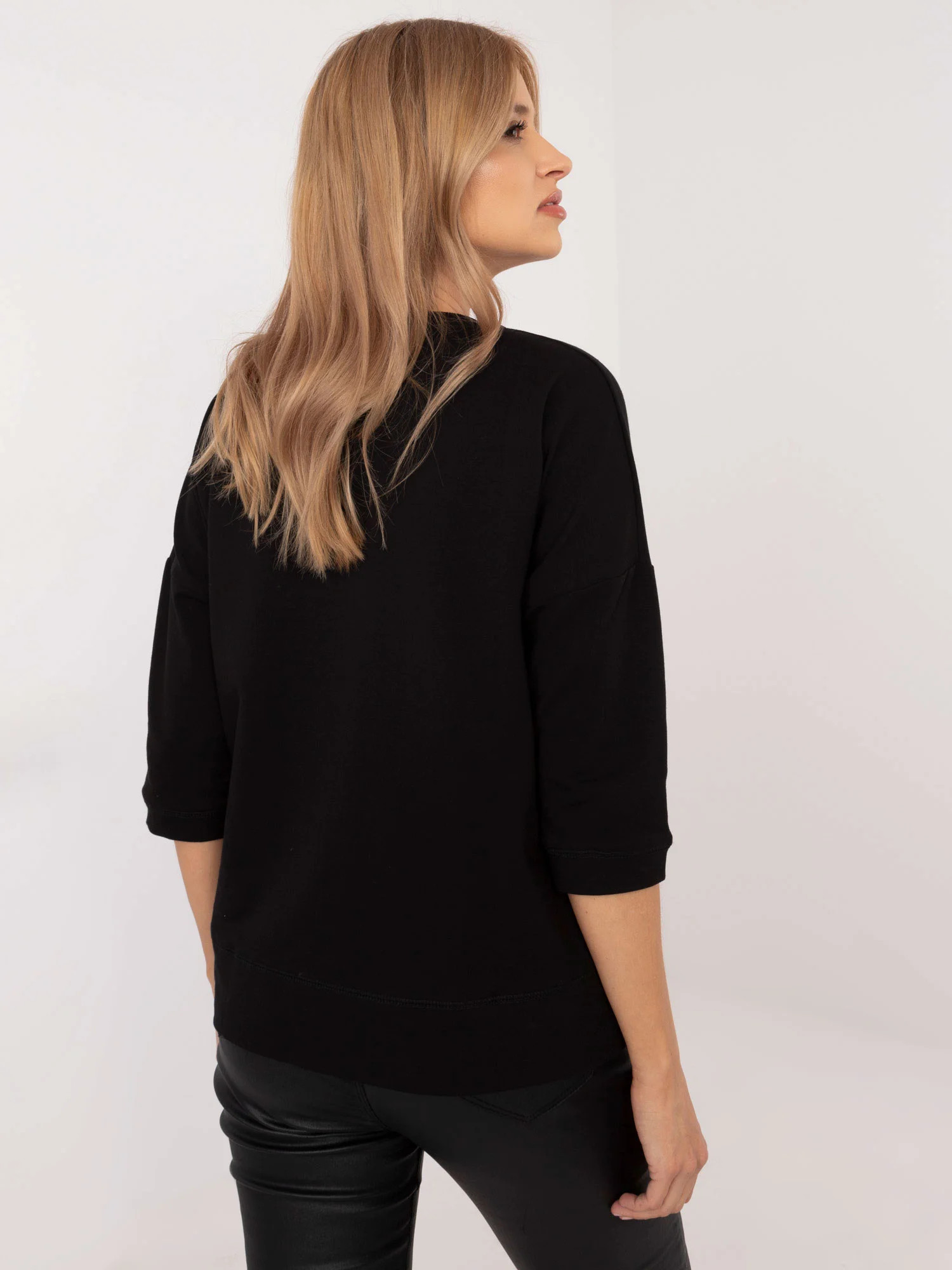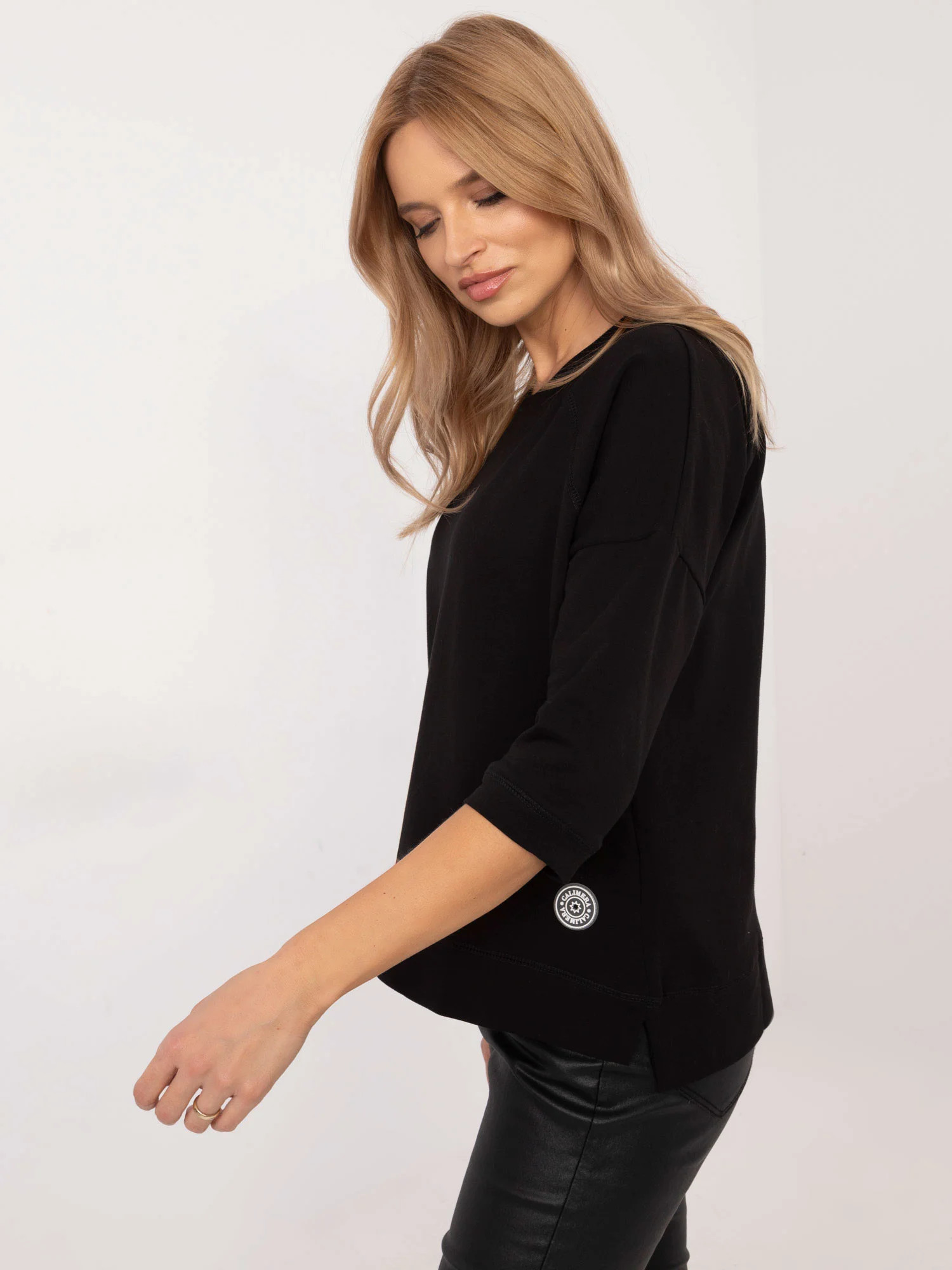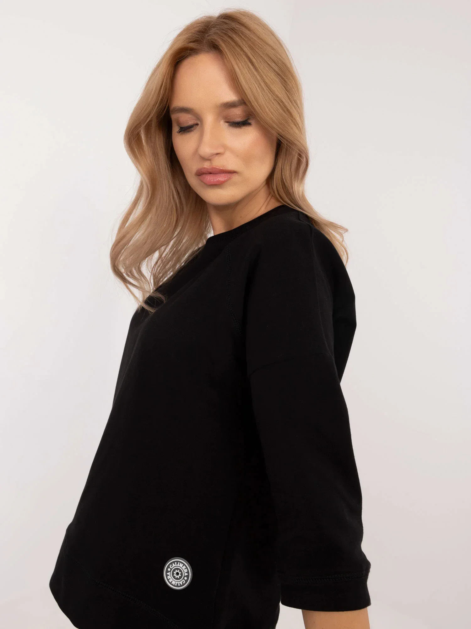 Wymiary bluzki w rozmiarze S mierzone na płasko: szerokość pod pachami - 56 cm, długość bluzy - 60 cm, długość rękawa - 25 cm (od szwu).