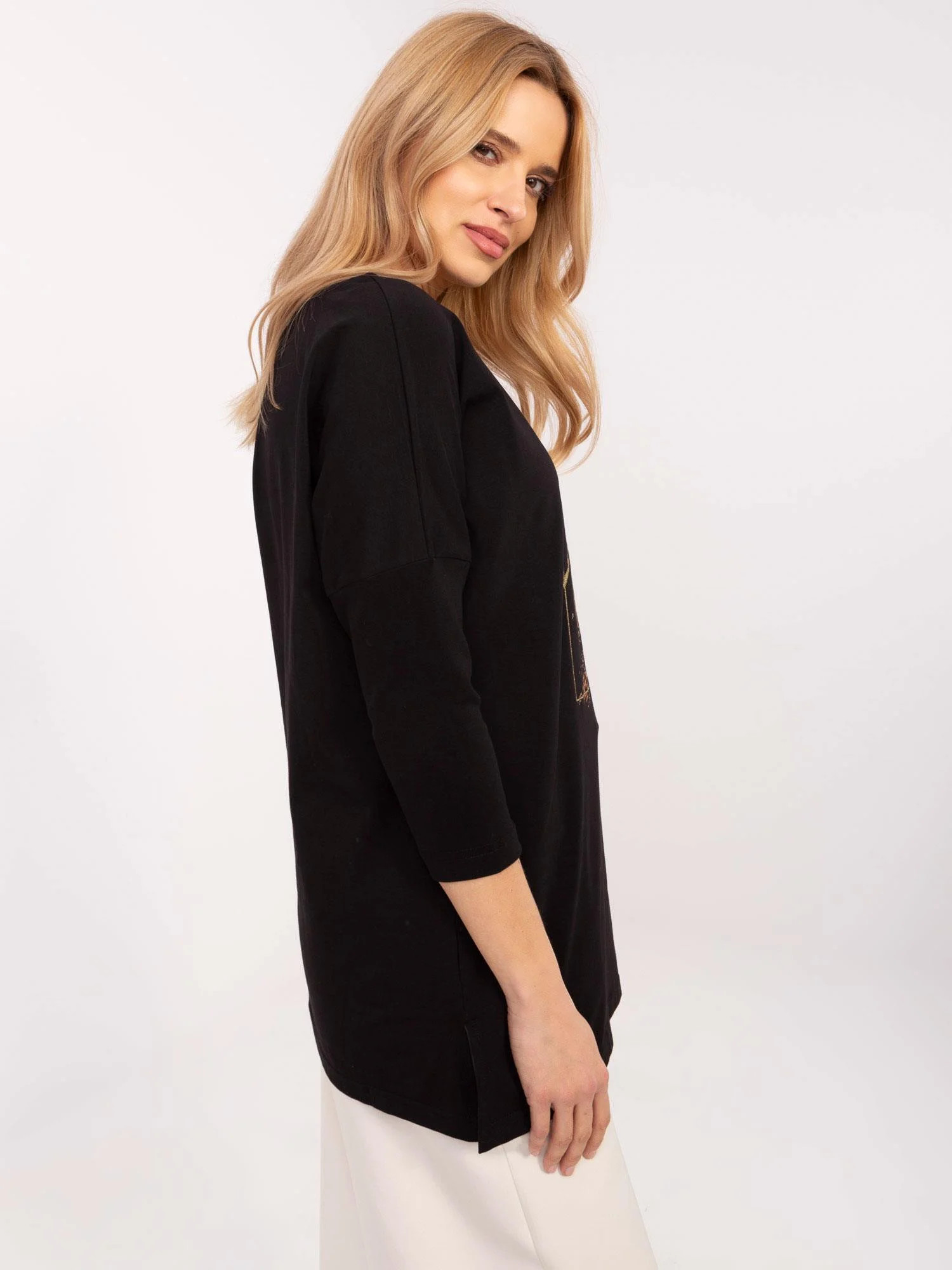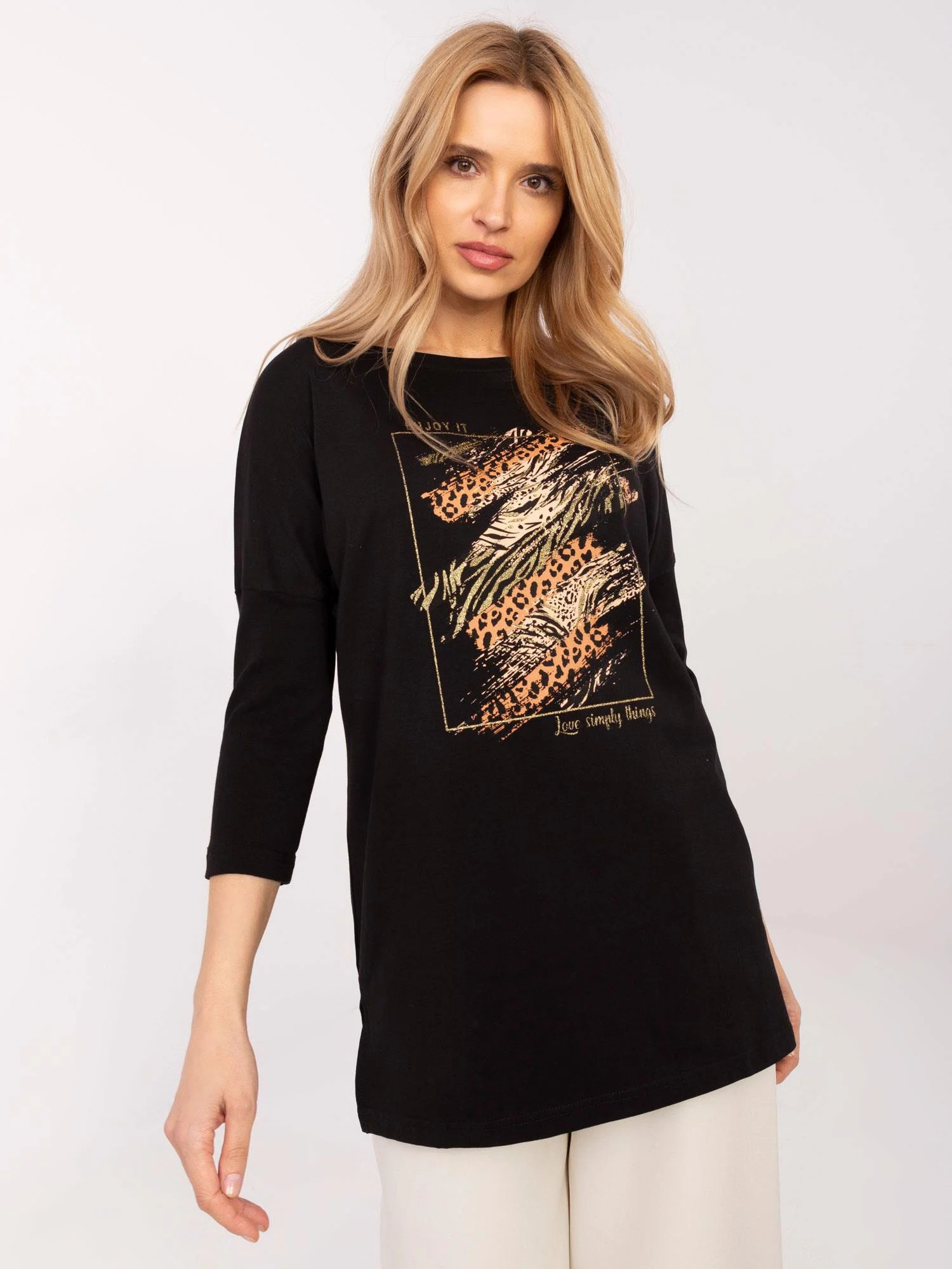 Modelka má na sobě velikost S. Rozměry modelky: výška 175 cm, prsa 90 cm, pas 66 cm, boky 94 cm.
