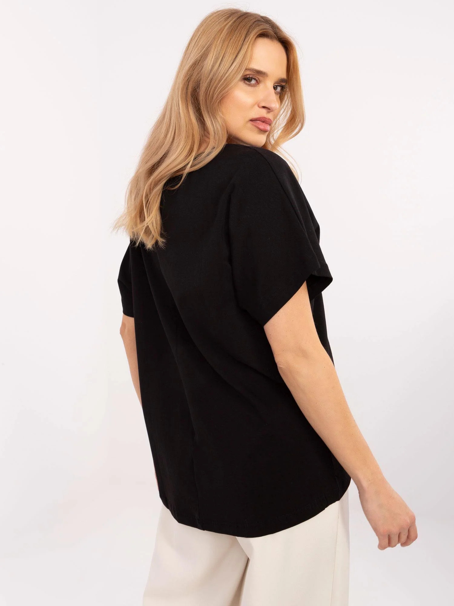 Rozměry trička ve velikosti S měřené na plocho: šířka v podpaží - 62 cm, délka rukávu - 10 cm (od podpaží), celková délka - 67 cm, (vpředu), celková délka - 71 cm, (vzadu), šířka v bocích - 58 cm (na plocho).