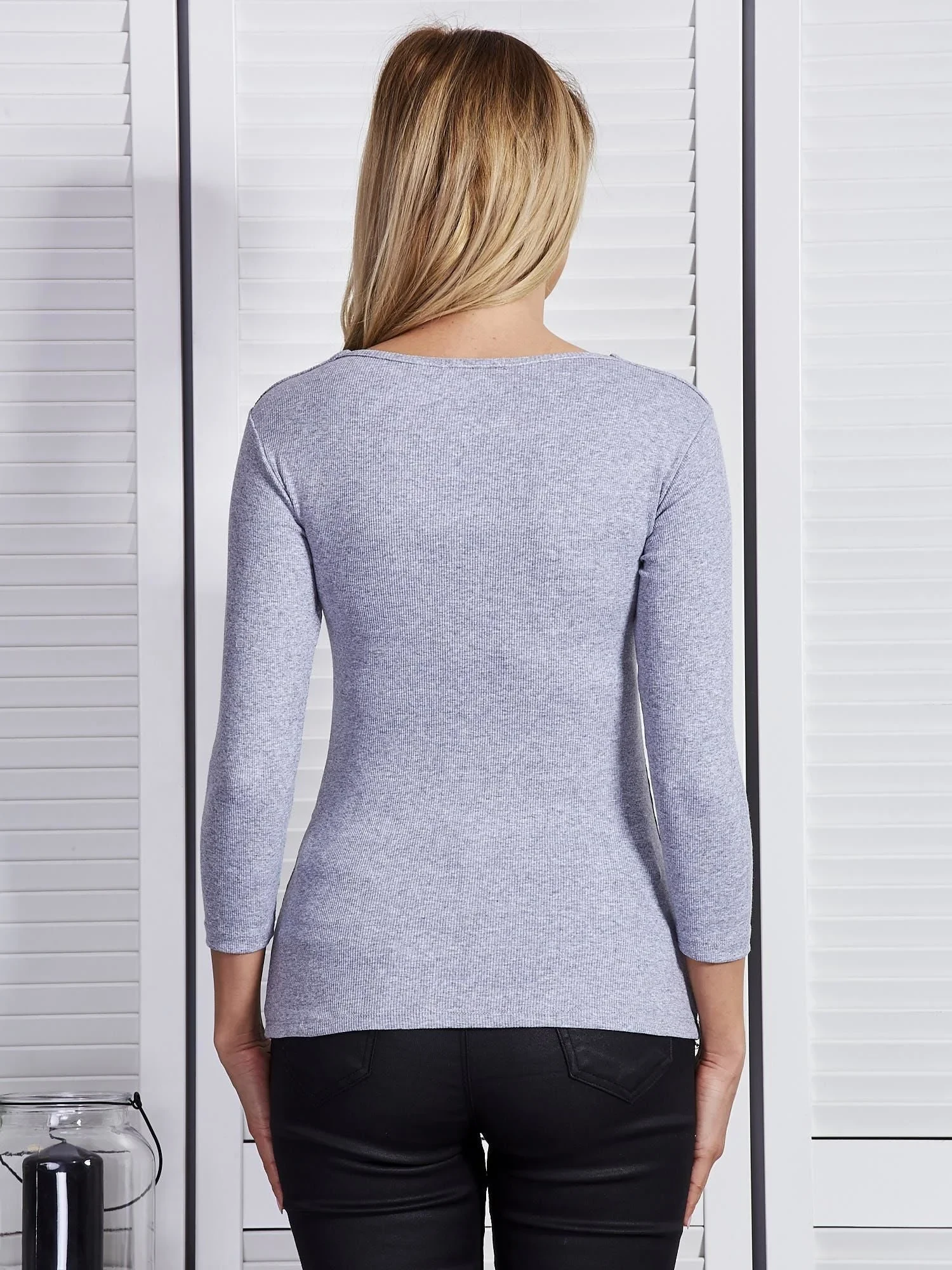 Dámská světle šedá halenka s krajkovým výstřihem.