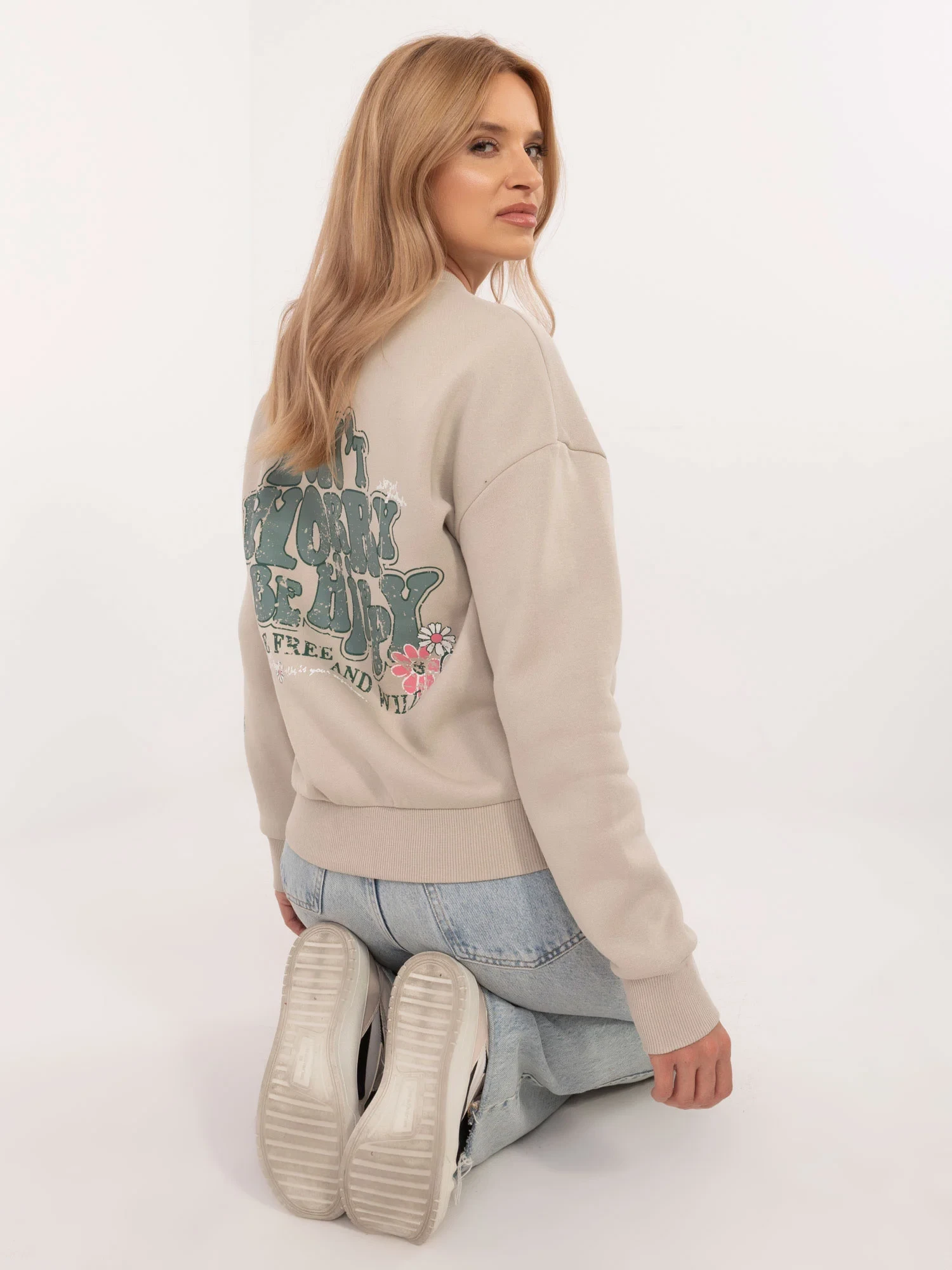 Rozměry mikiny velikosti S měřené na plocho: šířka v podpaží - 56 cm, celková délka - 64 cm, délka rukávu - 55 cm.