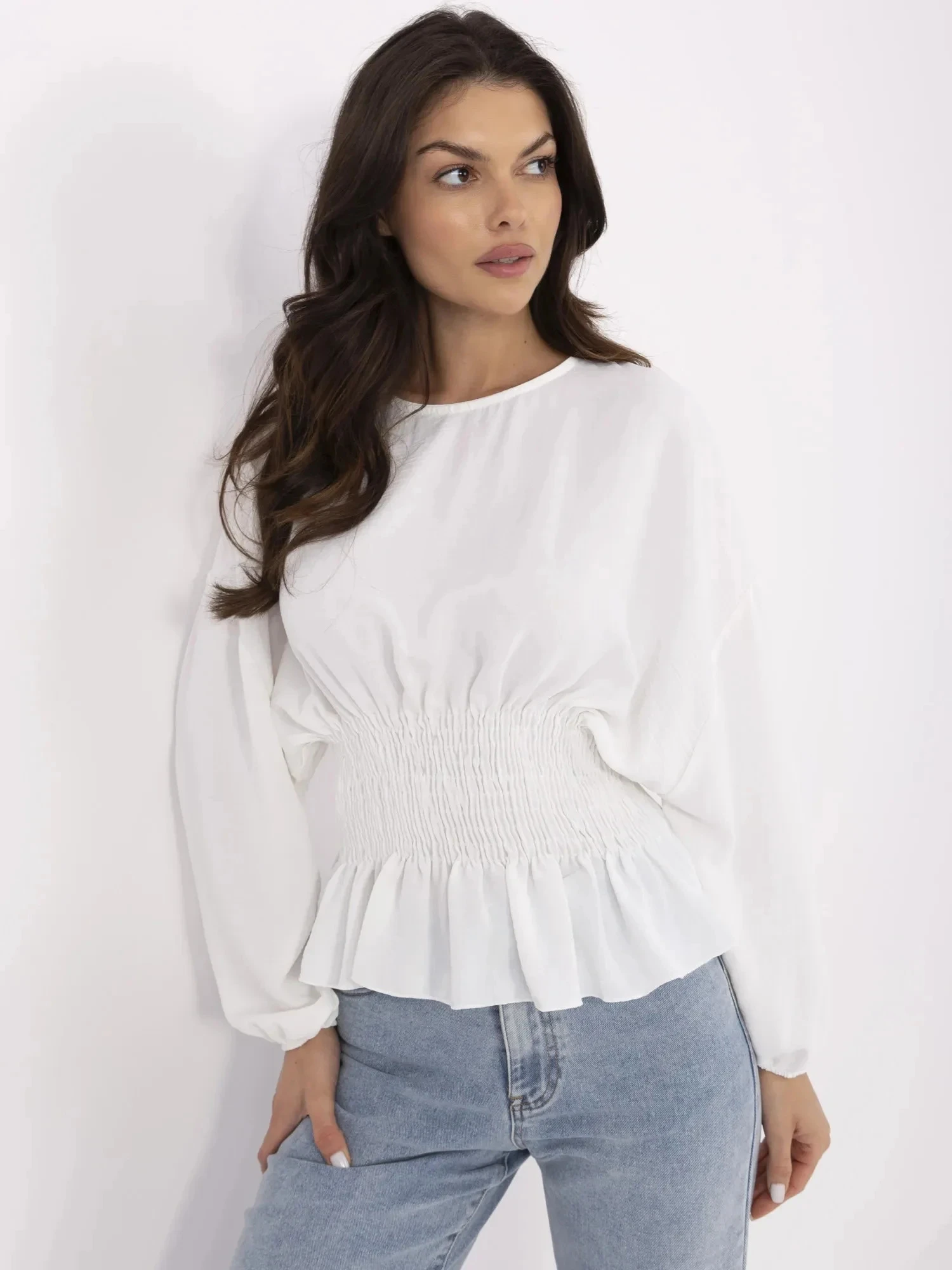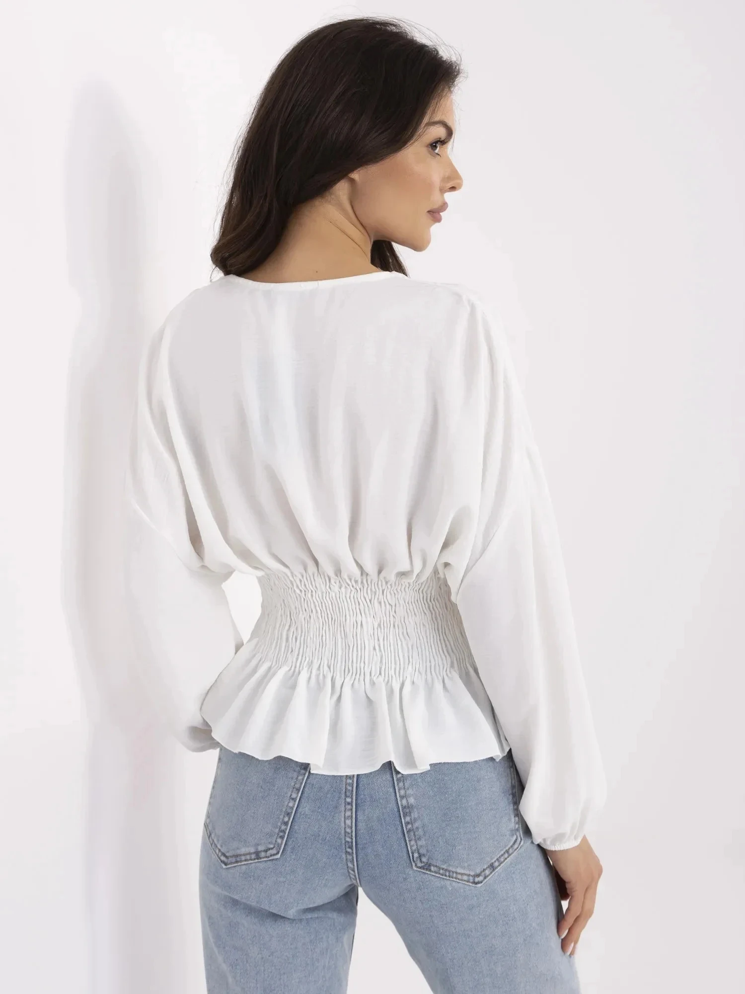 Rozměry halenky ve velikosti S/M měřené na plocho: šířka v podpaží - 45 cm, délka rukávu - 42 cm, šířka v bocích - 49 cm, celková délka - 58 cm.