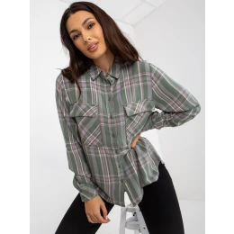 Khaki dámská kostkovaná košile s kapsami .