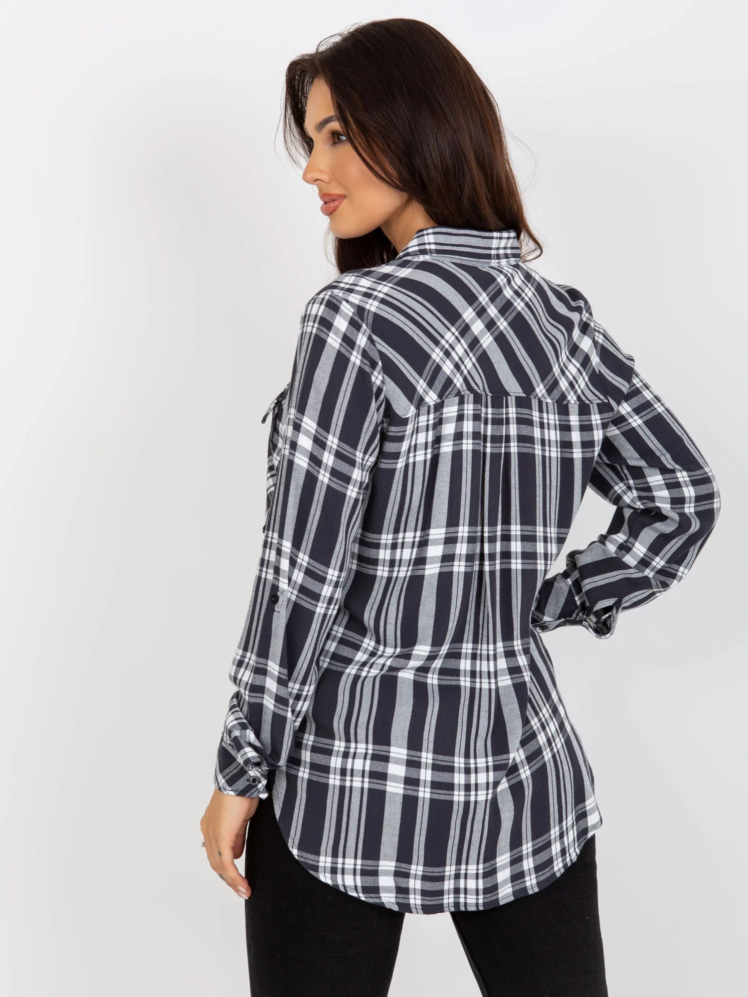 Tmavě šedá dámská kostkovaná košile z viskózy .