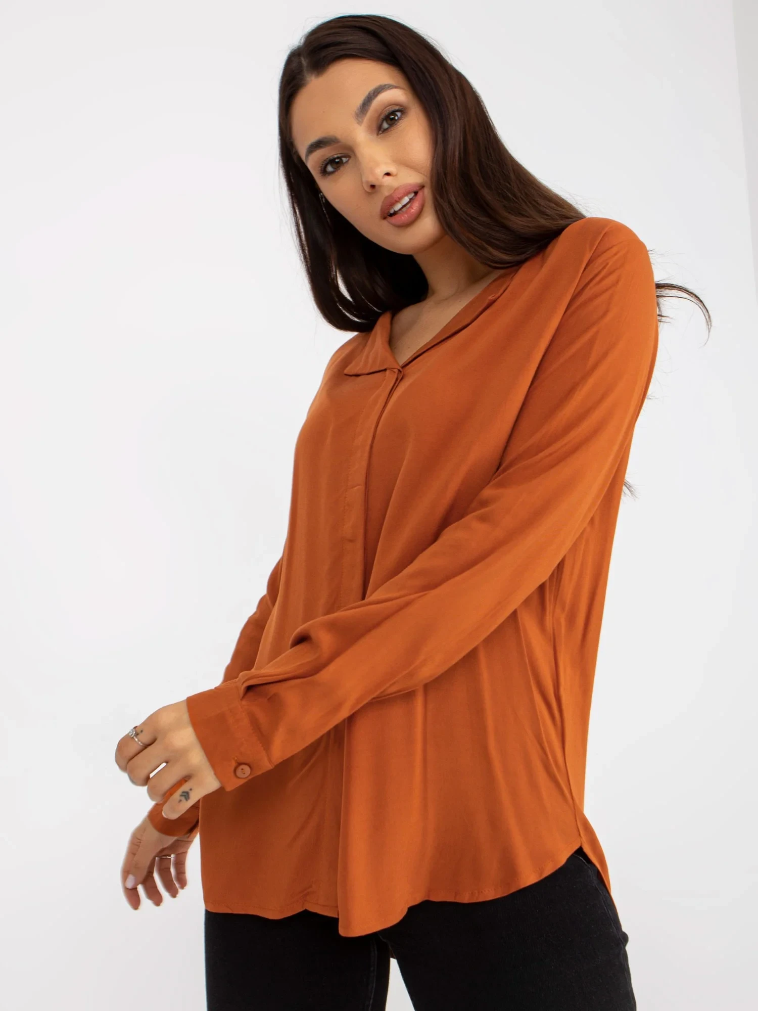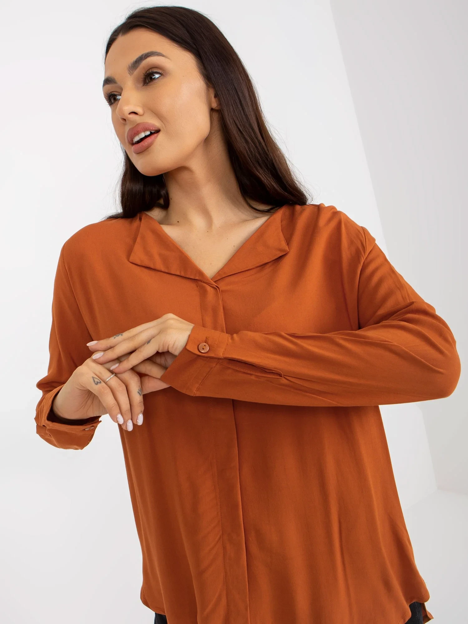 Světle hnědá viskózová košilová halenka .
