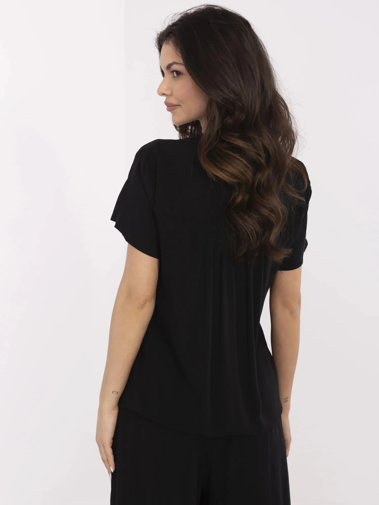 Rozměry halenky velikosti S měřené na plocho: šířka v podpaží - 54 cm, délka rukávu - 17 cm, šířka v bocích - 44 cm, celková délka - 73 cm.