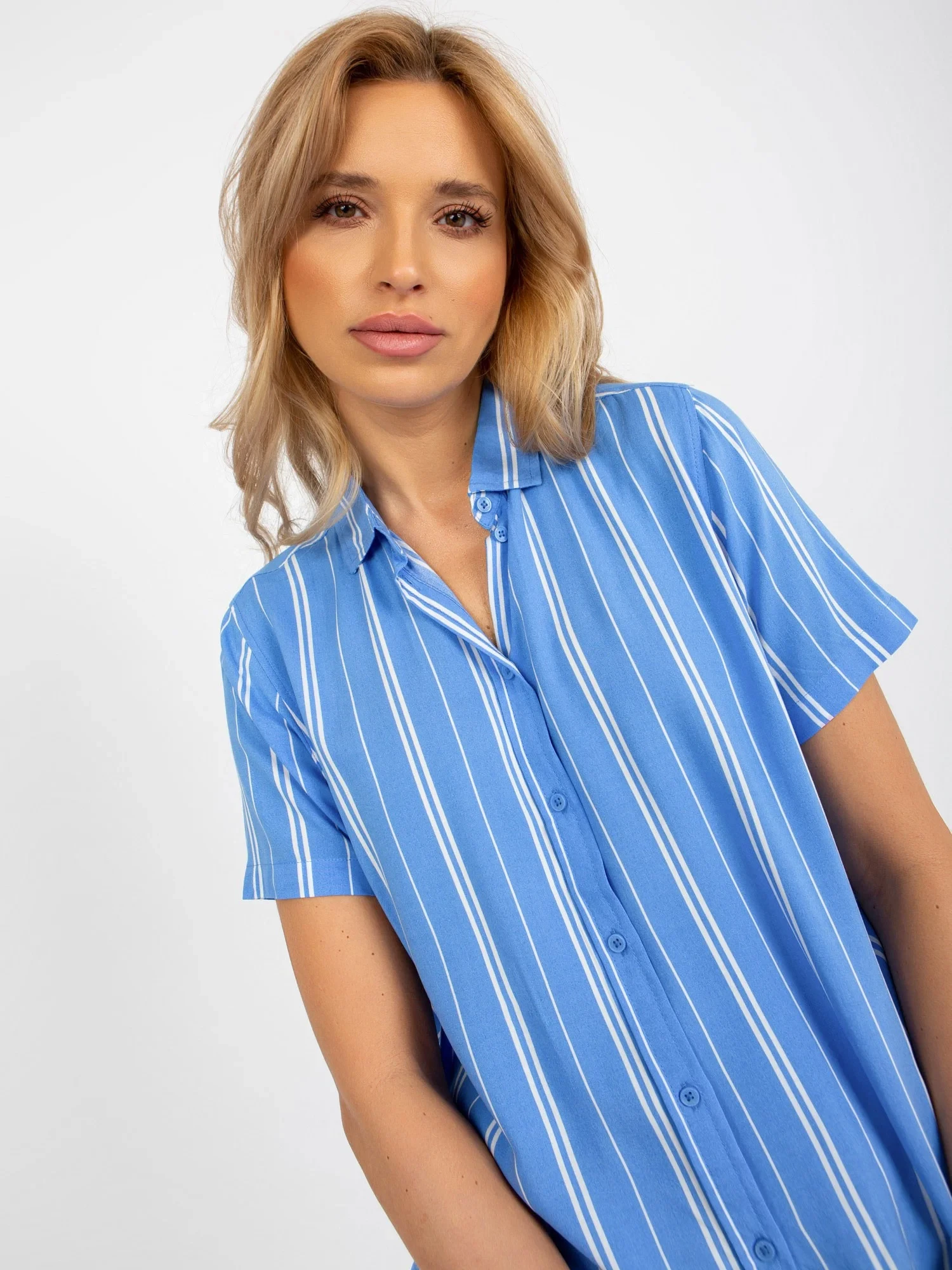 Rozměry košile ve velikosti S měřené na plocho: šířka v podpaží - 60 cm, délka rukávu - 59 cm, celková délka - (vpředu) 73 cm, celková délka - (vzadu) - 80 cm.