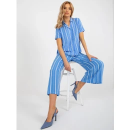 Modrá rozepnutá pruhovaná košilová halenka SUBLEVEL .