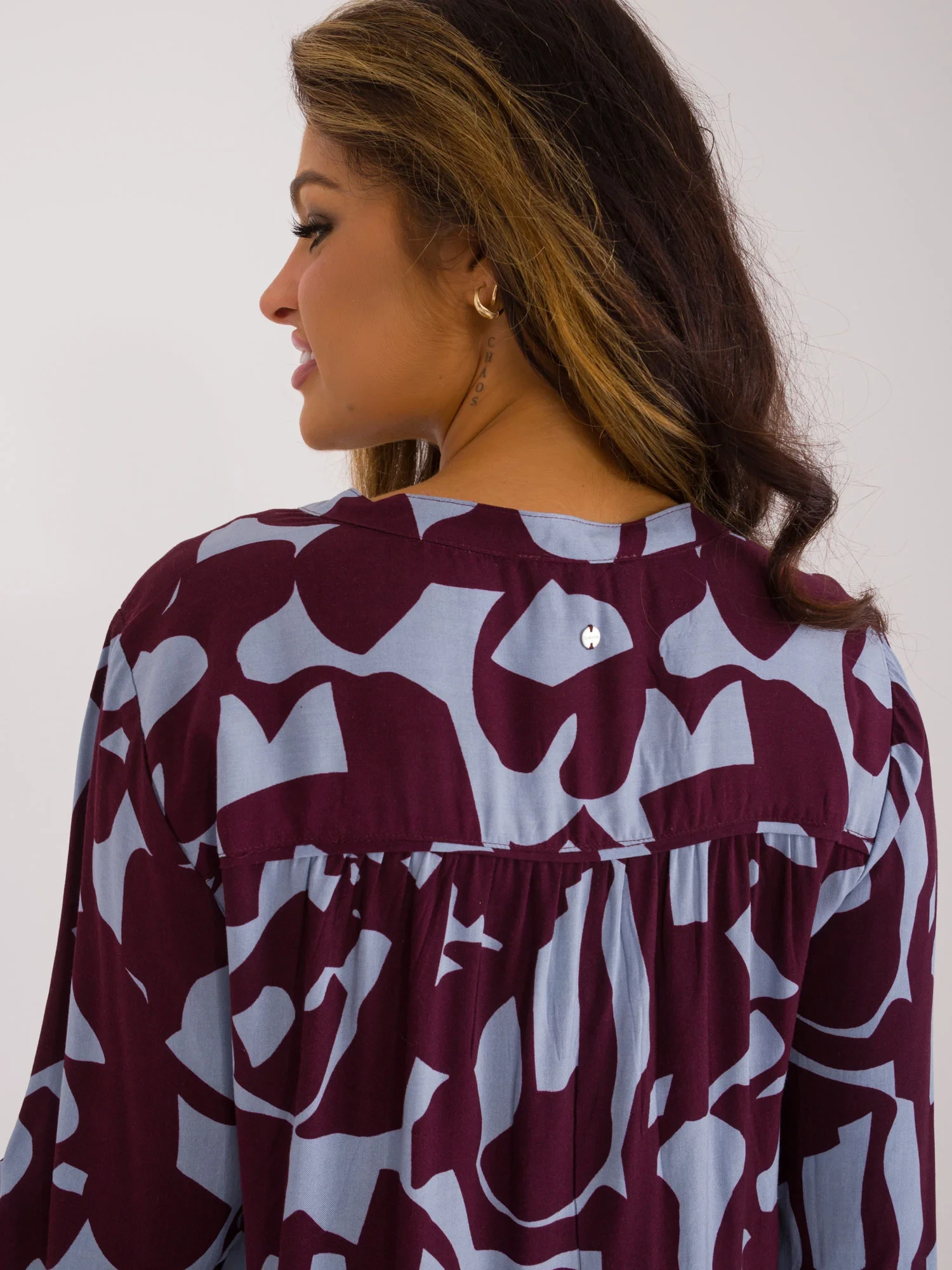 Rozměry halenky velikosti S měřené na plocho: šířka v podpaží - 54 cm, délka rukávu - 65 cm, celková délka - 73 cm.