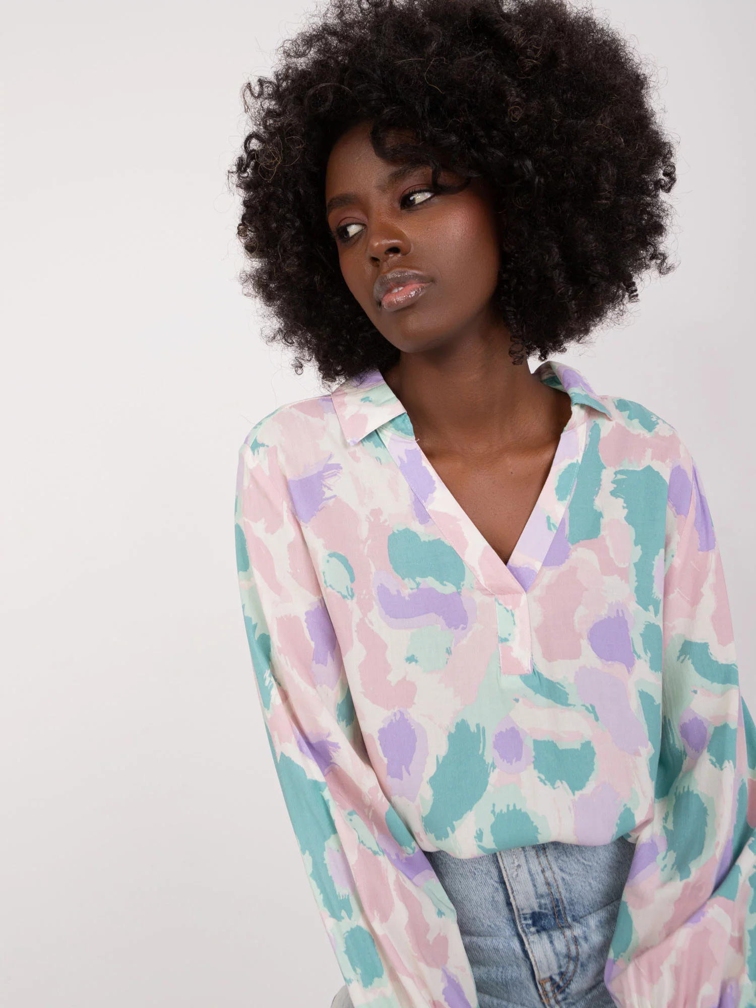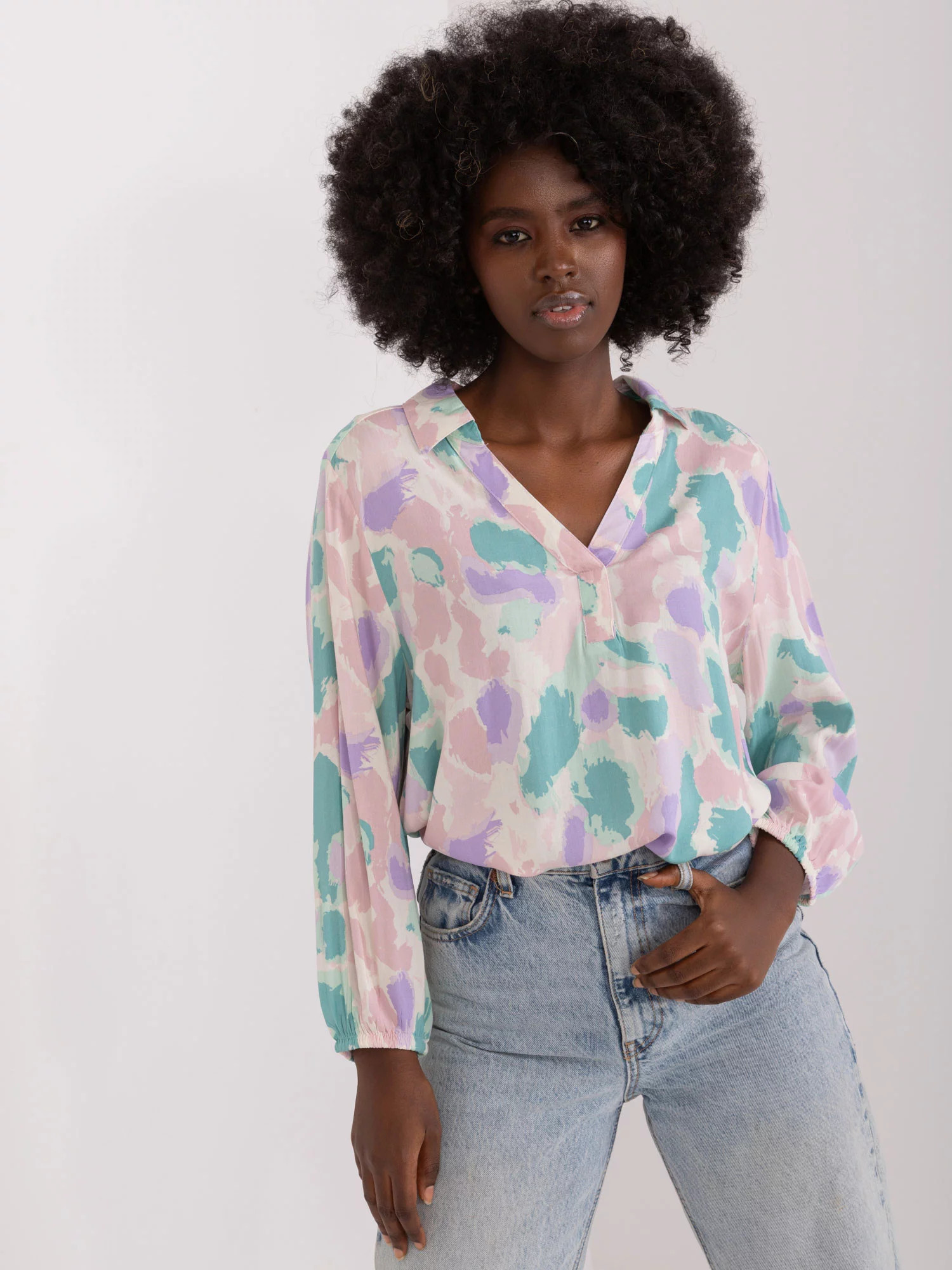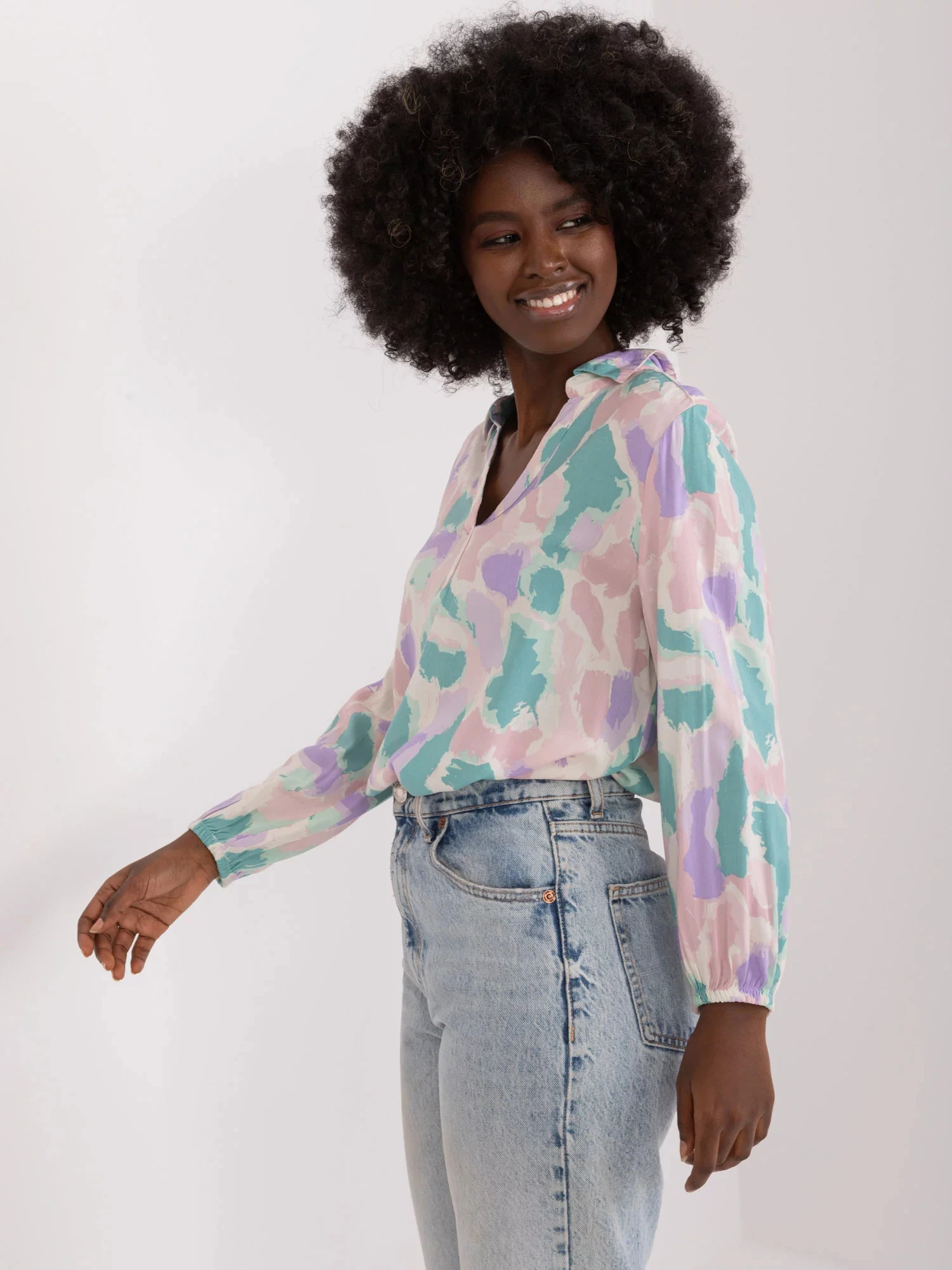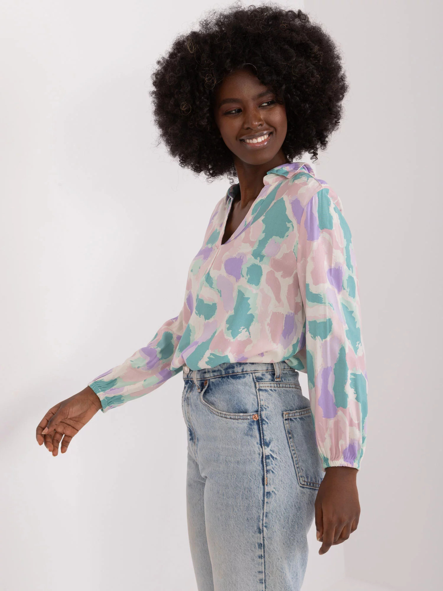 Rozměry halenky ve velikosti S měřené na plocho: šířka v podpaží - 50 cm, délka rukávu - 48 cm, celková délka (vpředu)- 61 cm, celková délka (vzadu)- 70 cm.