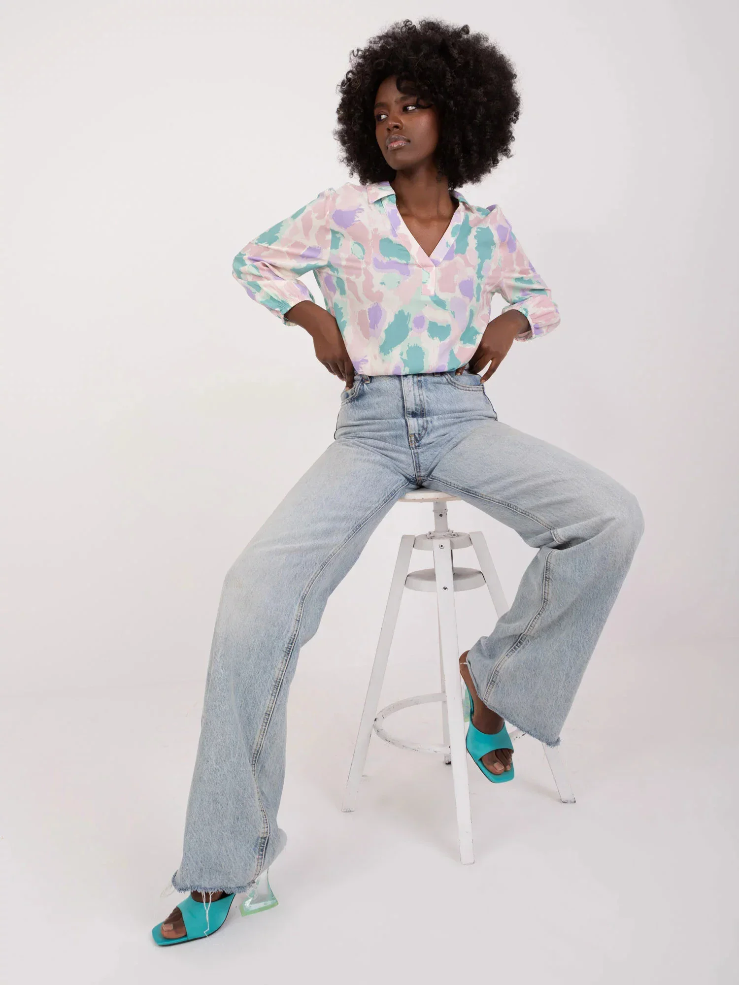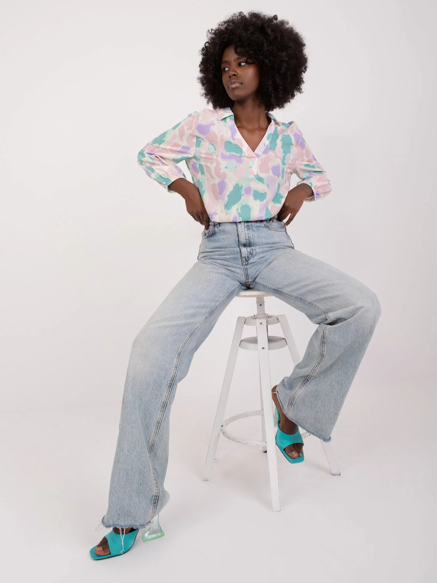Modelka má na sobě velikost S. Rozměry modelky: výška 168 cm, prsa 82 cm, pas 62 cm, boky 93 cm.