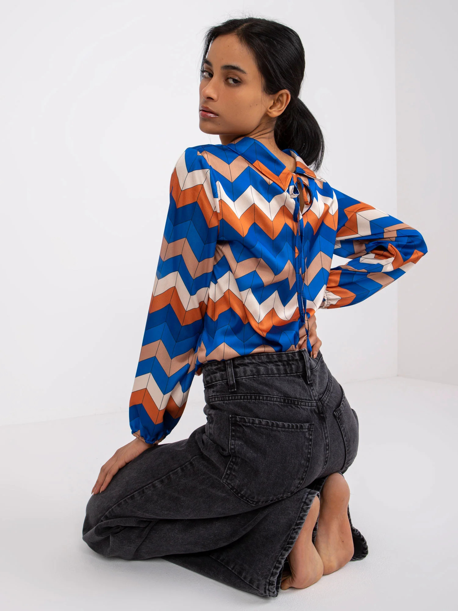 Modelka má na sobě jednu velikost. Rozměry modelky: výška 172 cm, poprsí 90 cm, pas 62 cm, boky 89 cm.