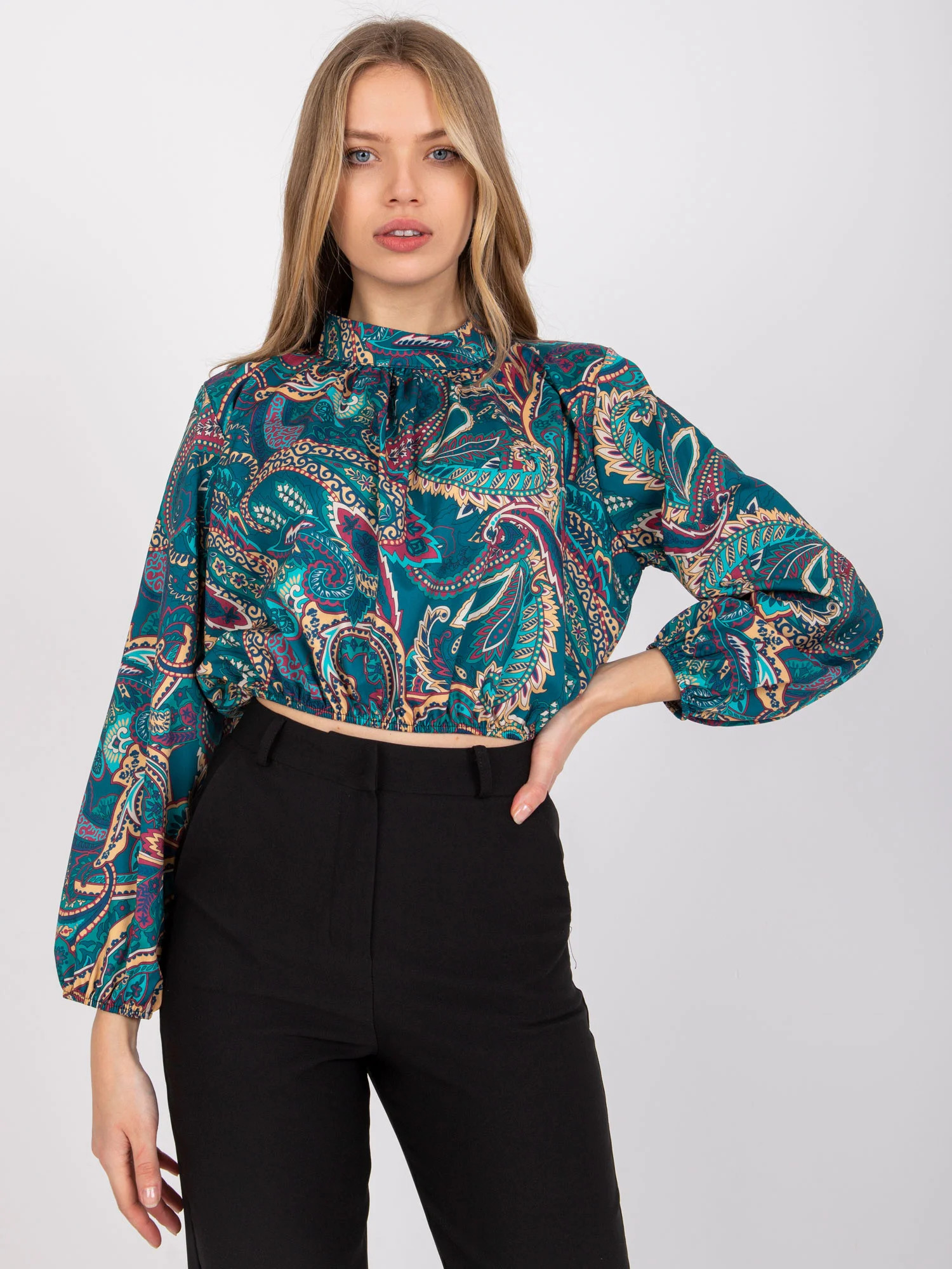 Rozměry halenky v jedné velikosti měřené na plocho: šířka v podpaží - 52 cm, celková délka - 44 cm, délka rukávu - 59 cm.EAN čárové kódy zboží jsou: