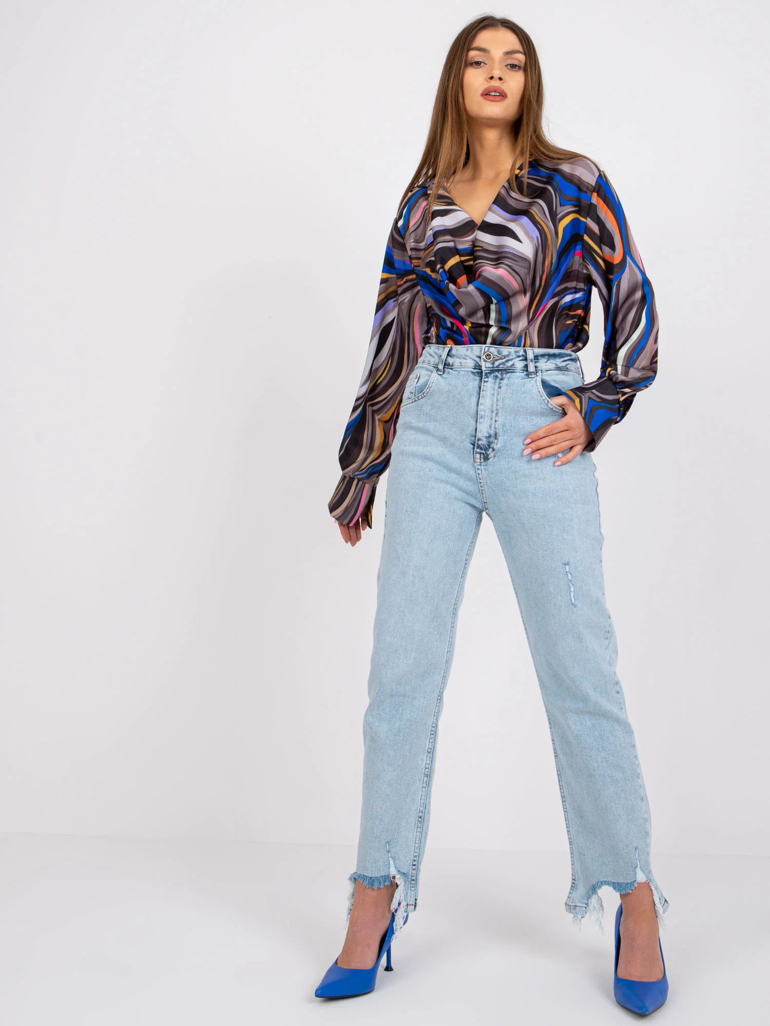 Modelka má na sobě jednu velikost. Rozměry modelky: výška 170 cm, poprsí 93 cm, pas 66 cm, boky 93 cm.