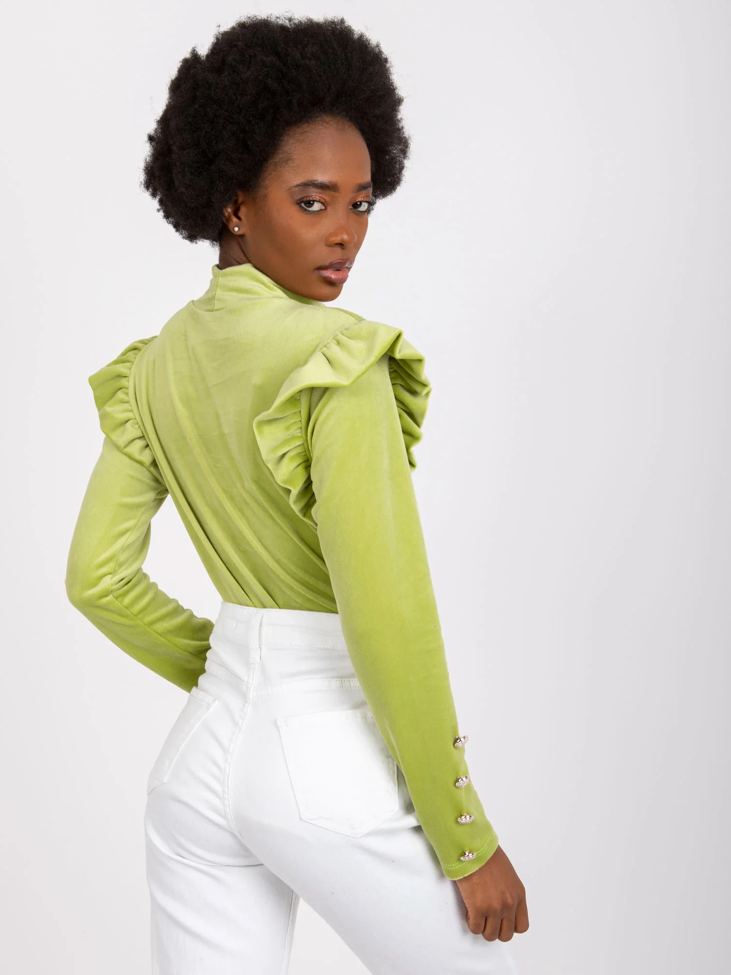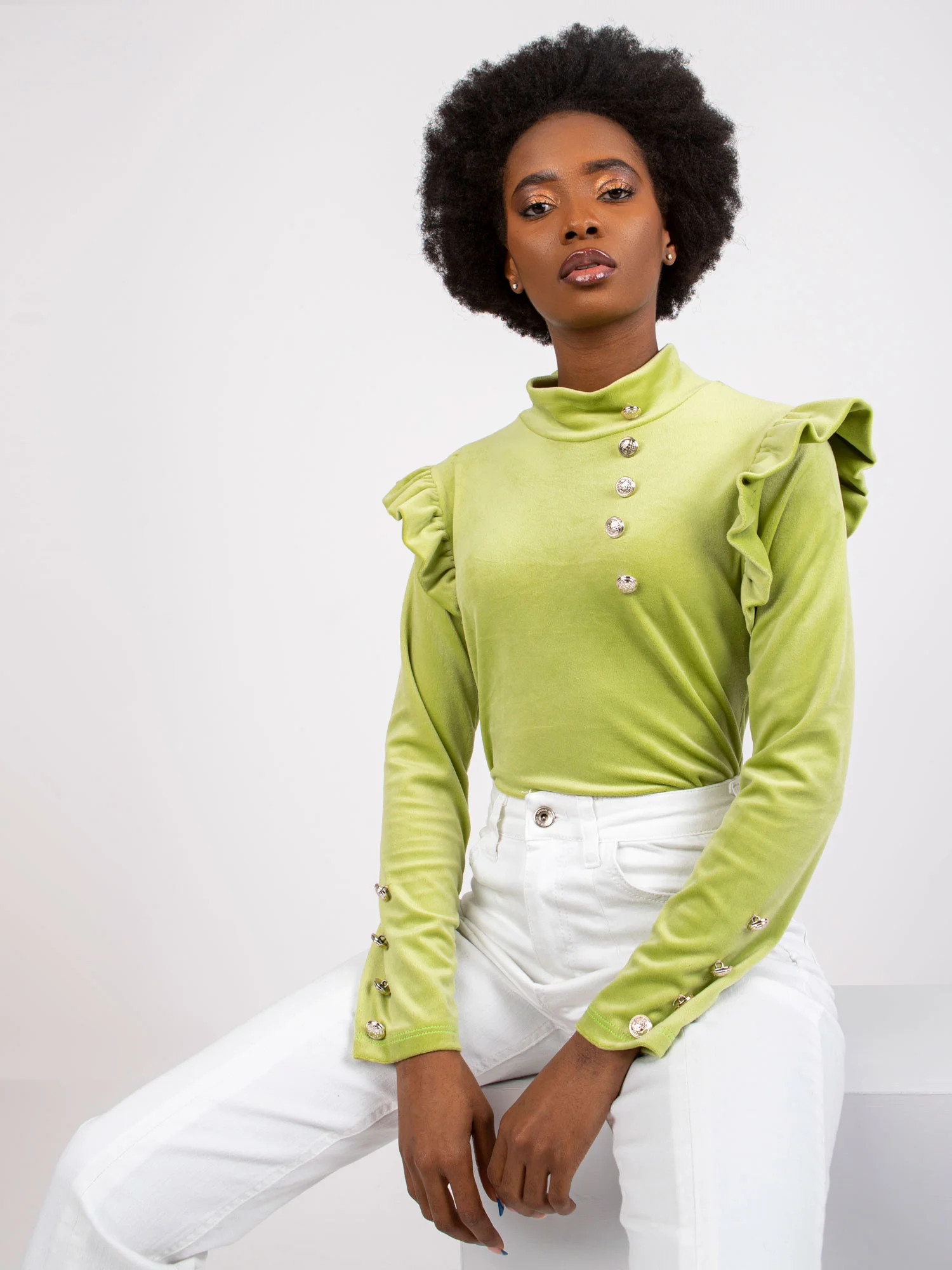 Modelka má na sobě jednu velikost. Rozměry modelky: výška 162 cm, poprsí 80 cm, pas 63 cm, boky 80 cm.