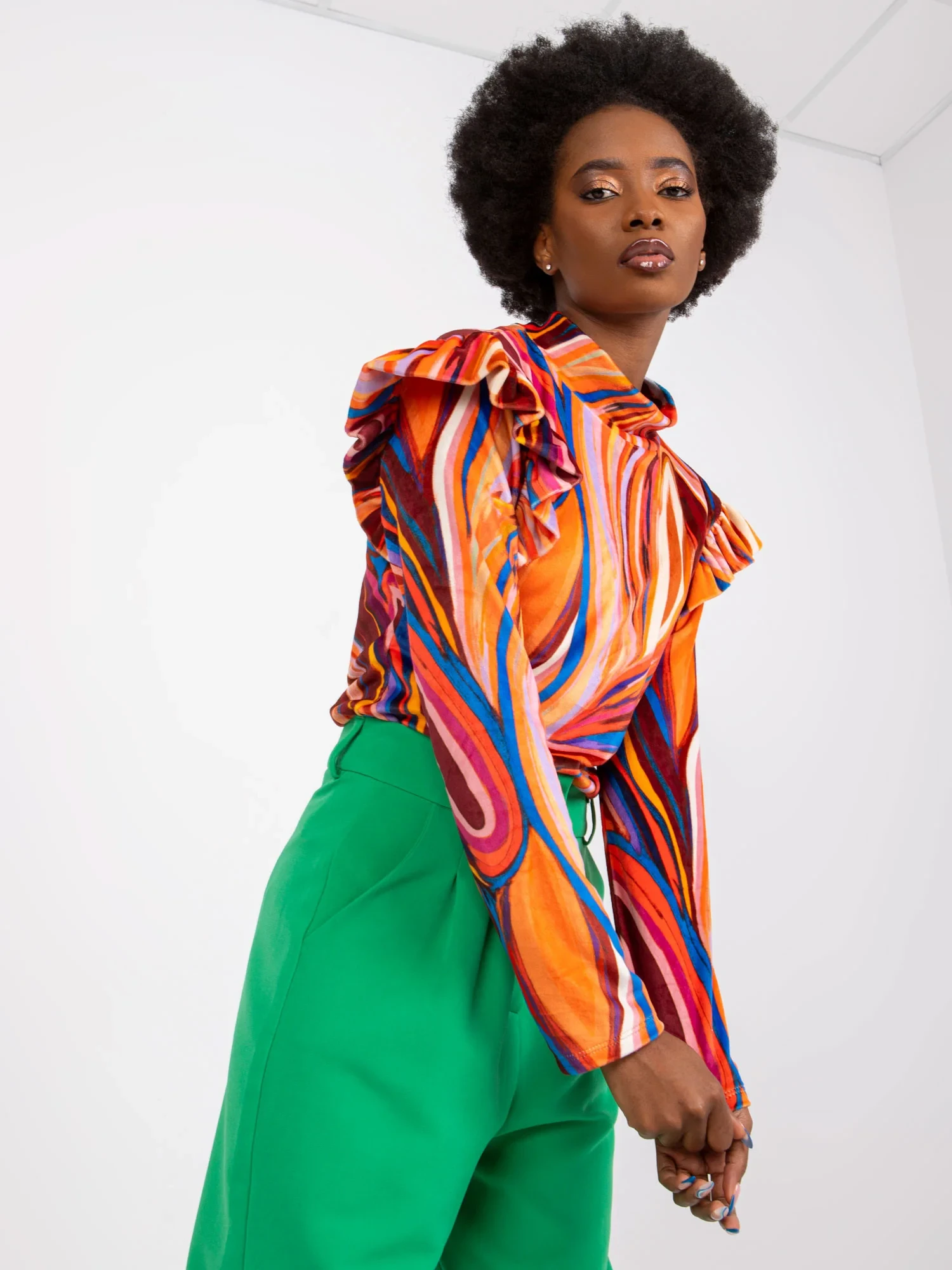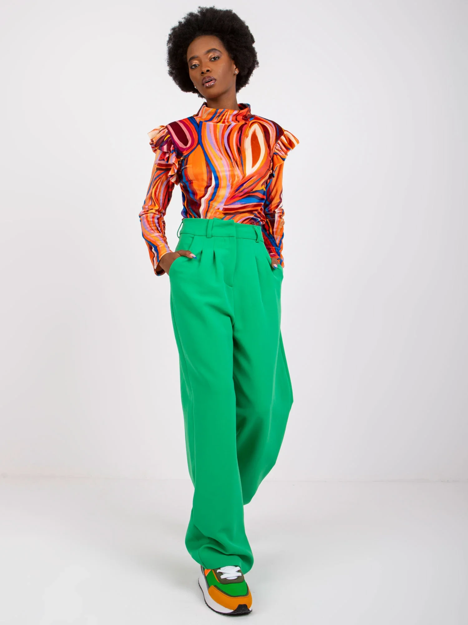 Modelka má na sobě jednu velikost. Rozměry modelky: výška 162 cm, poprsí 80 cm, pas 63 cm, boky 80 cm.
