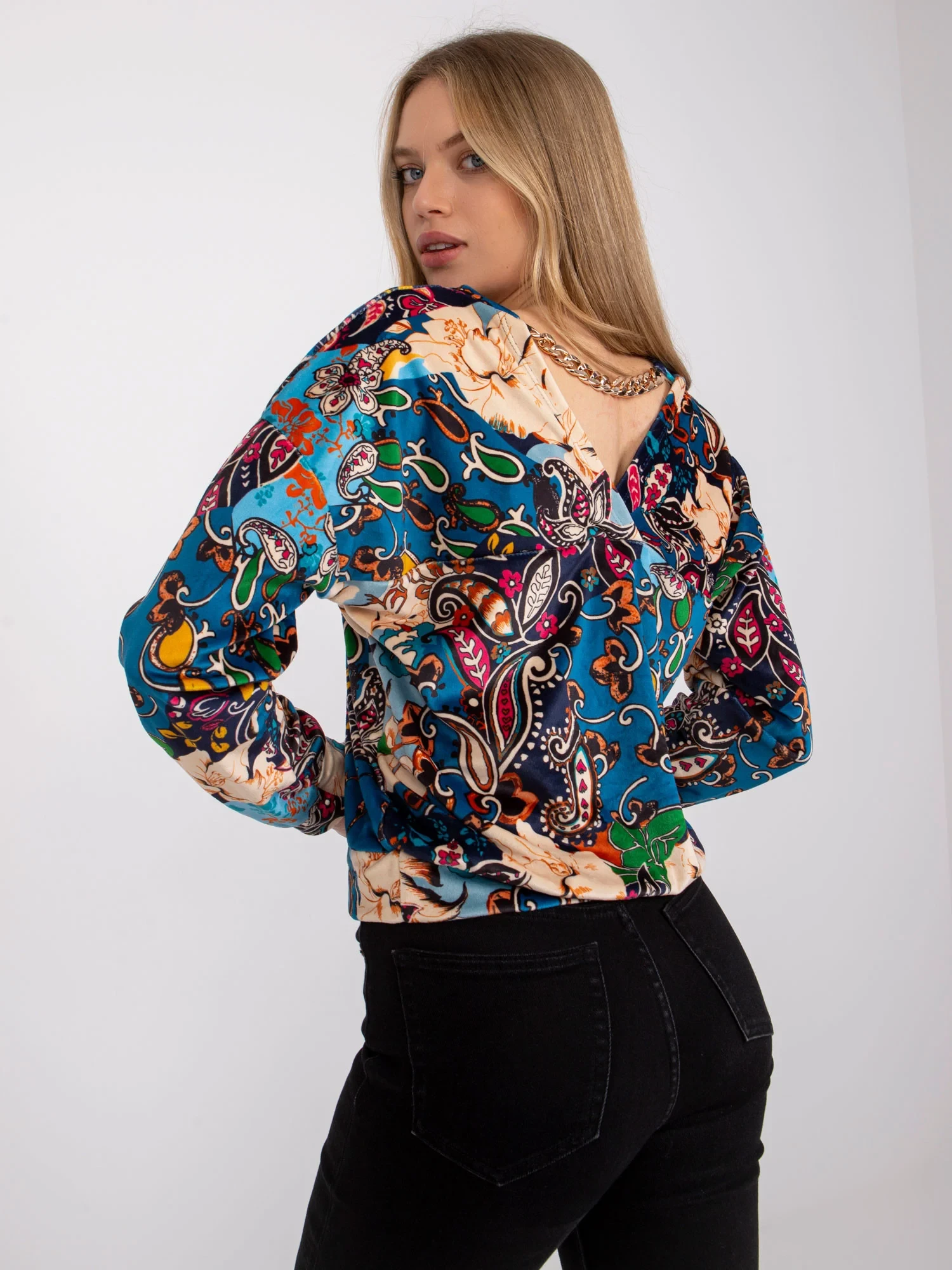 Modelka má na sobě jednu velikost. Rozměry modelky: výška 174 cm, prsa 82 cm, pas 62 cm, boky 89 cm.
