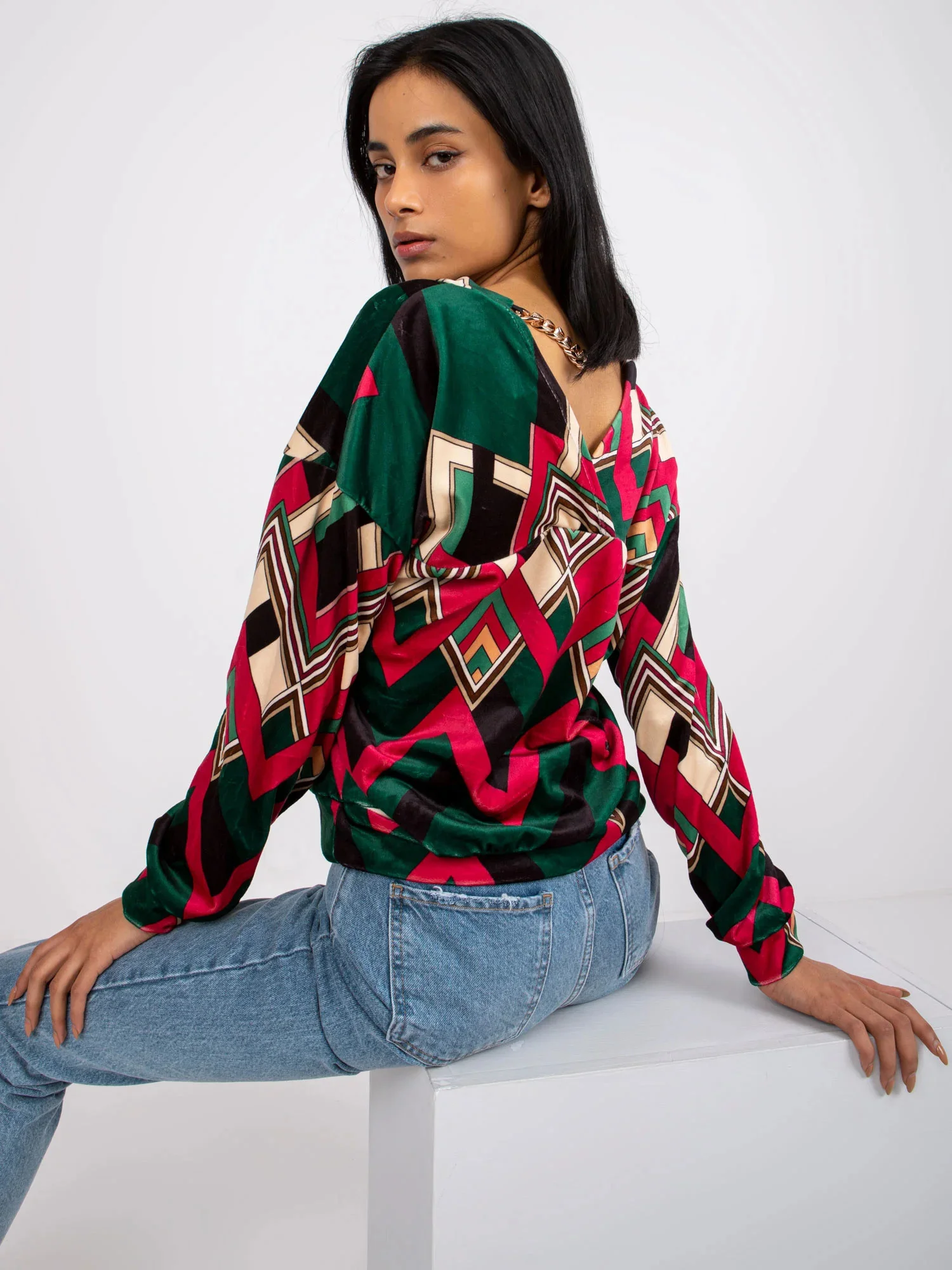 Modelka má na sobě jednu velikost. Rozměry modelky: výška 172 cm, poprsí 90 cm, pas 62 cm, boky 89 cm.