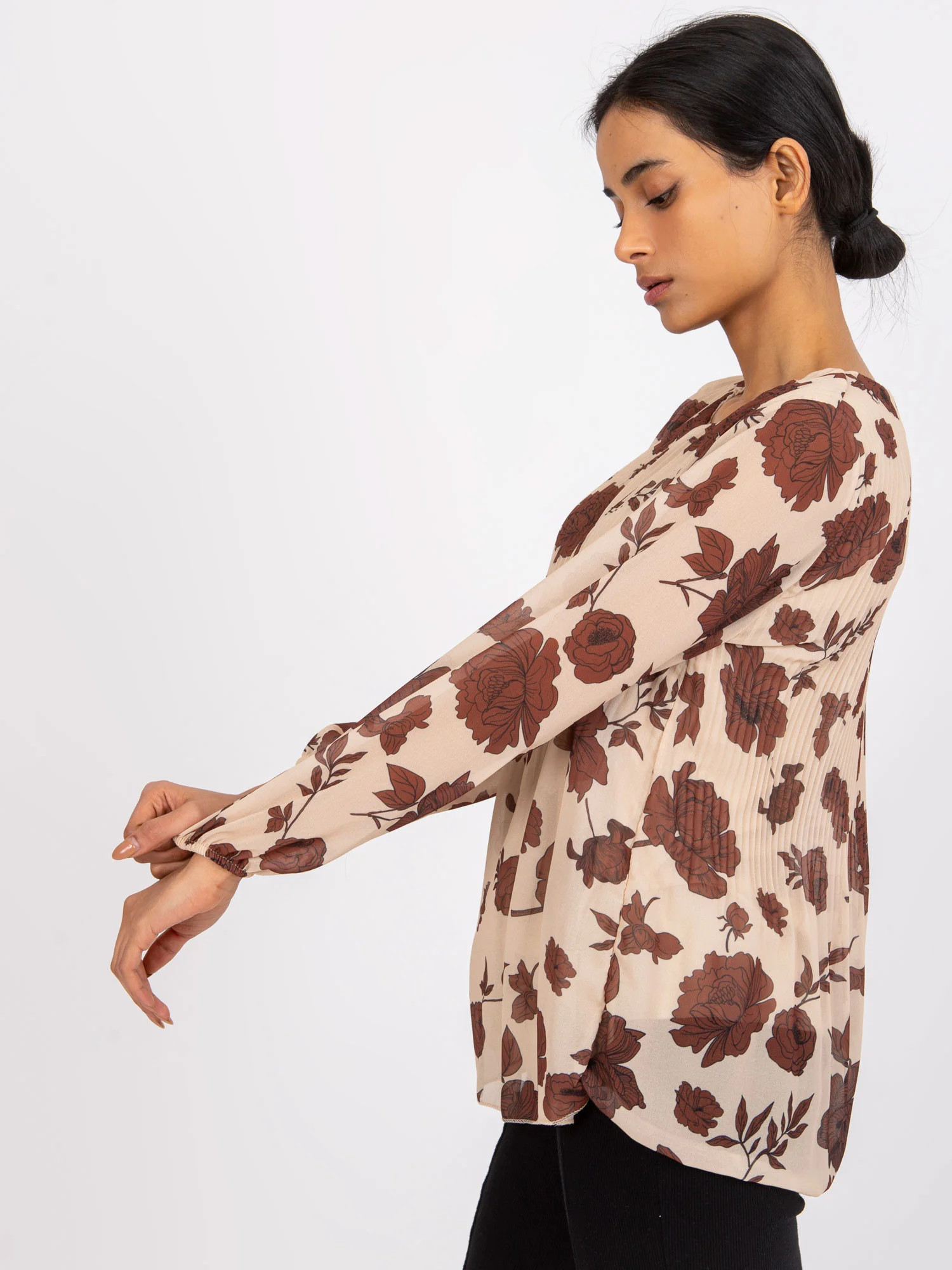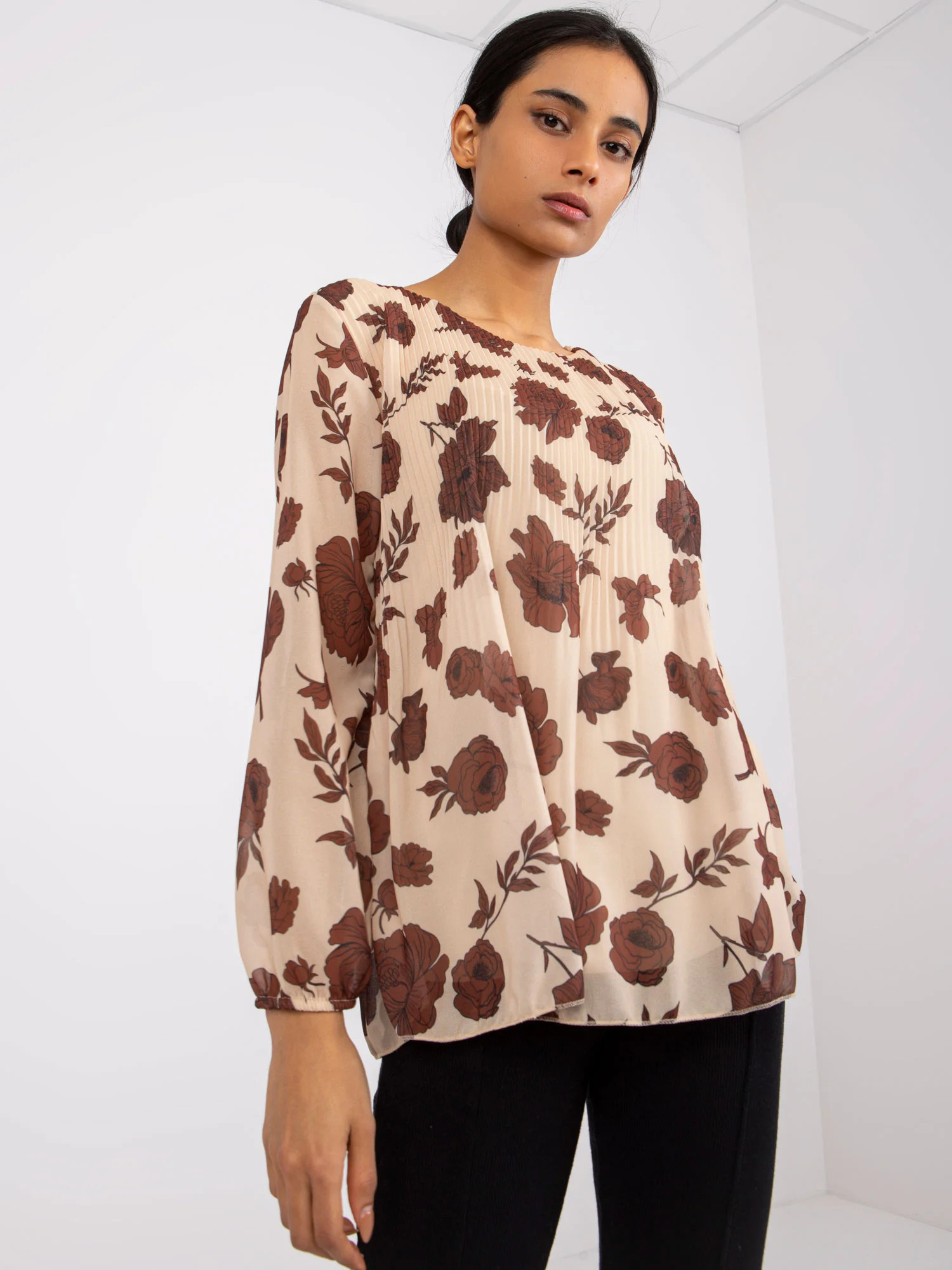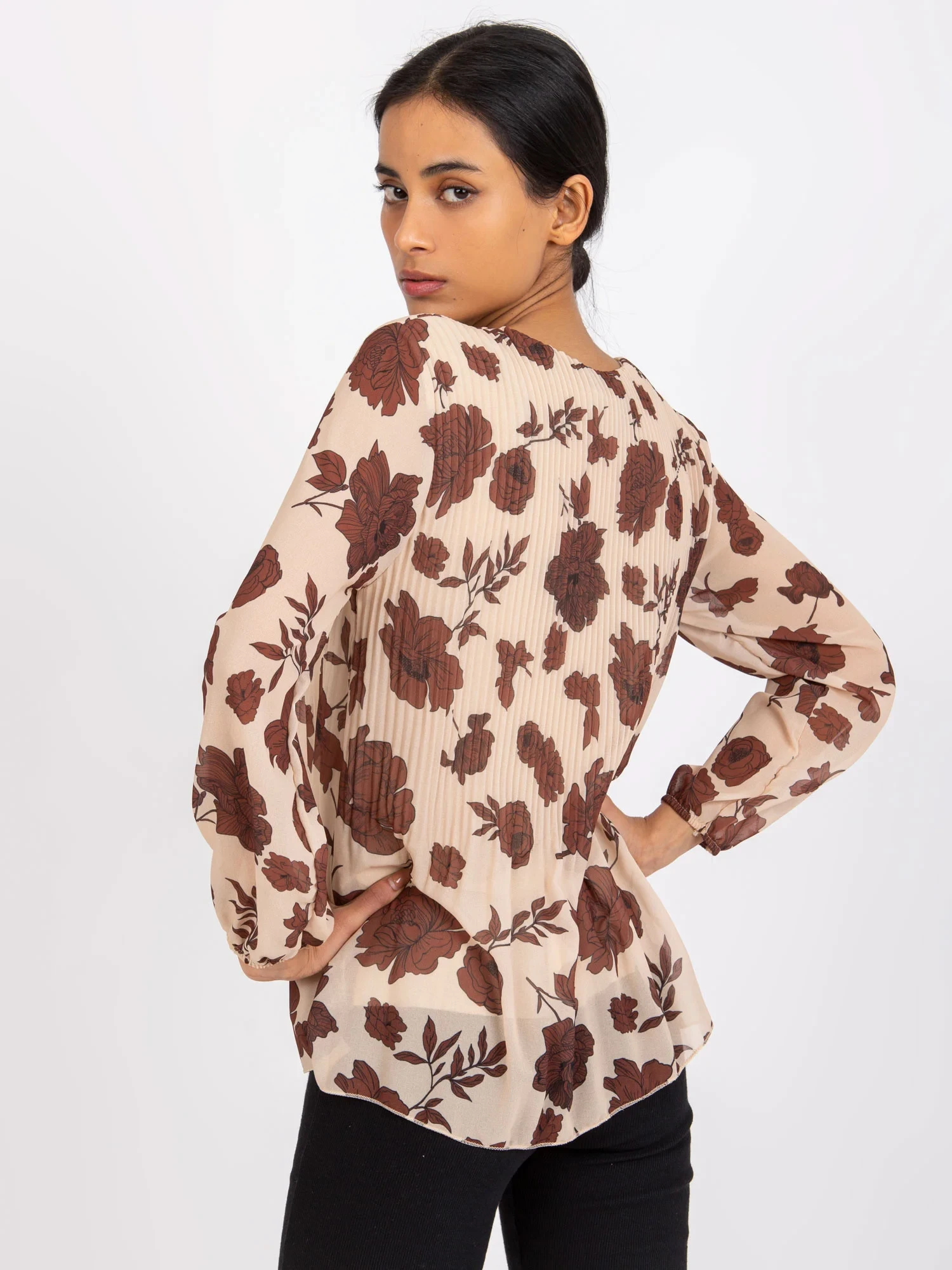 Modelka má na sobě jednu velikost. Rozměry modelky: výška 172 cm, poprsí 90 cm, pas 62 cm, boky 89 cm.