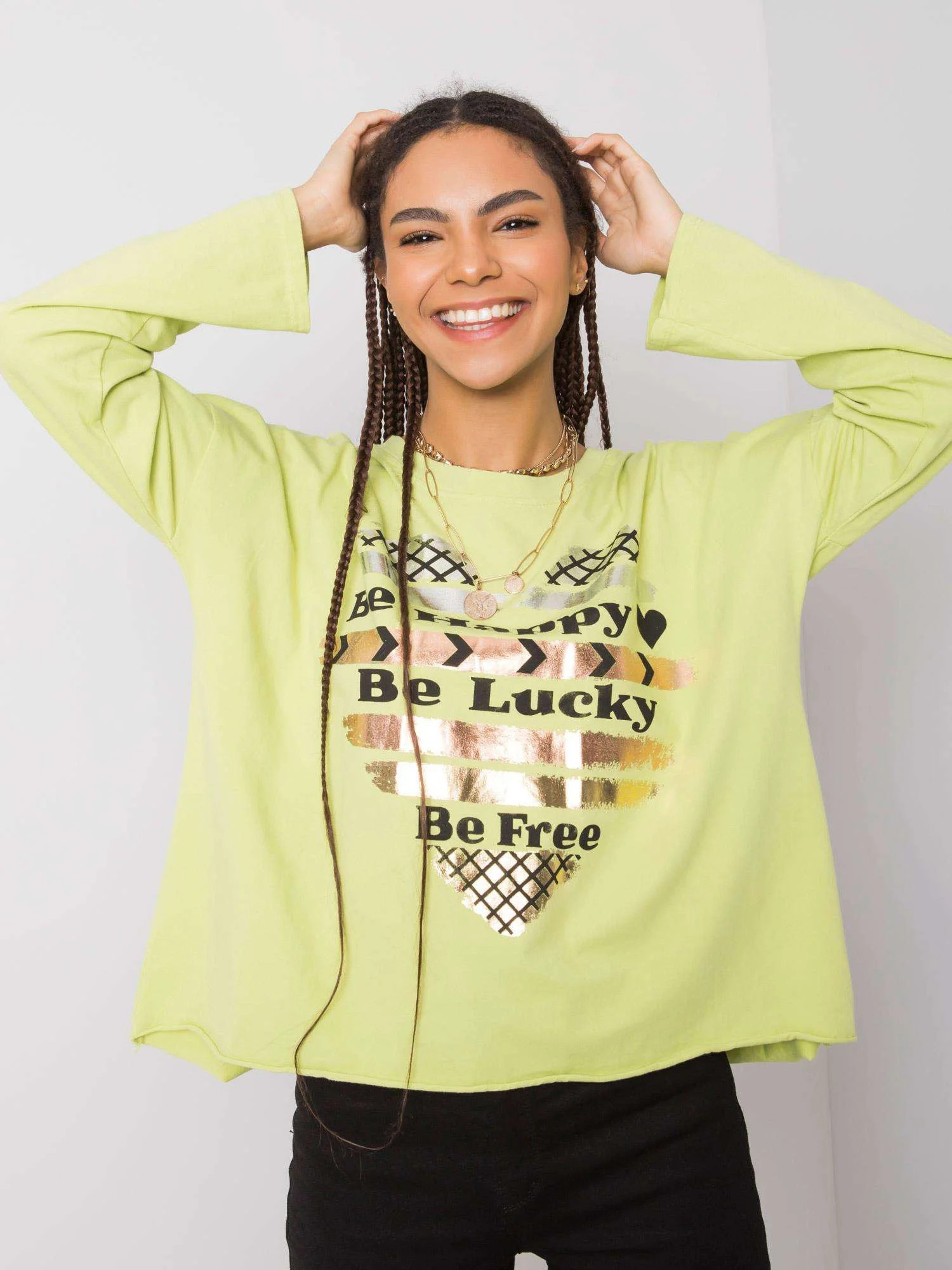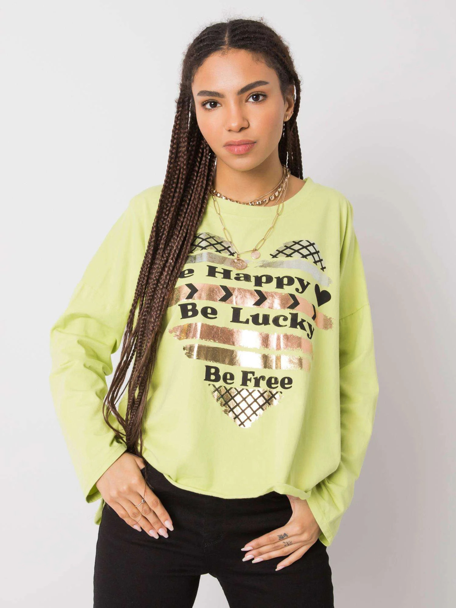 Světle zelená bavlněná halenka s potiskem.