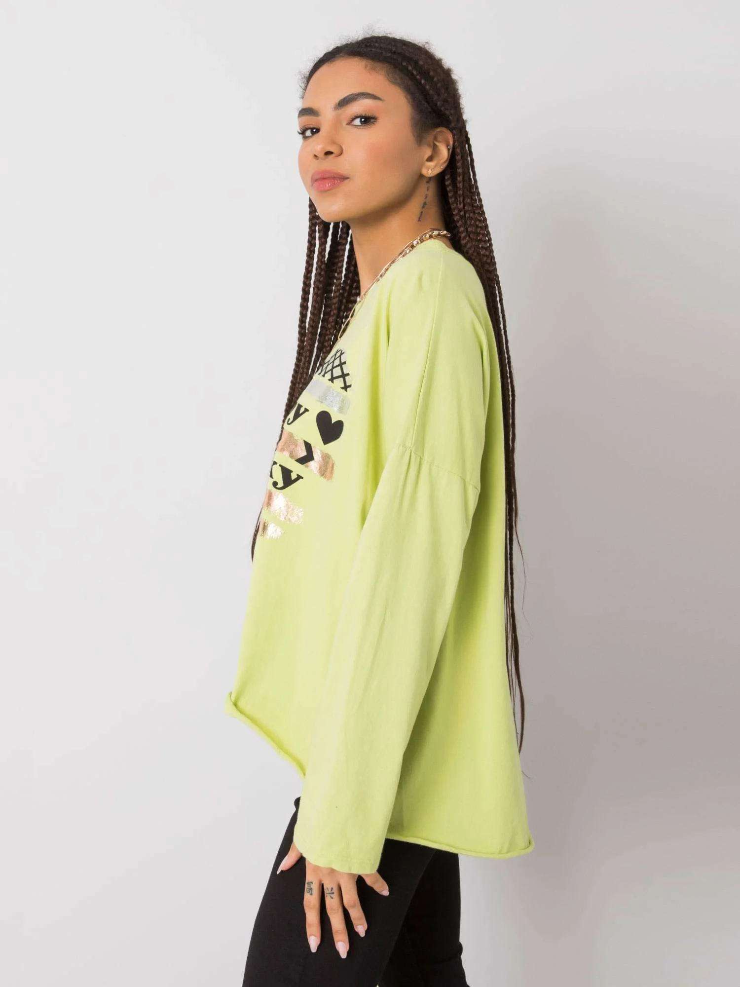 Modelka má na sobě jednu velikost. Rozměry modelky: výška 161 cm, poprsí 81 cm, pas 63 cm, boky 89 cm.