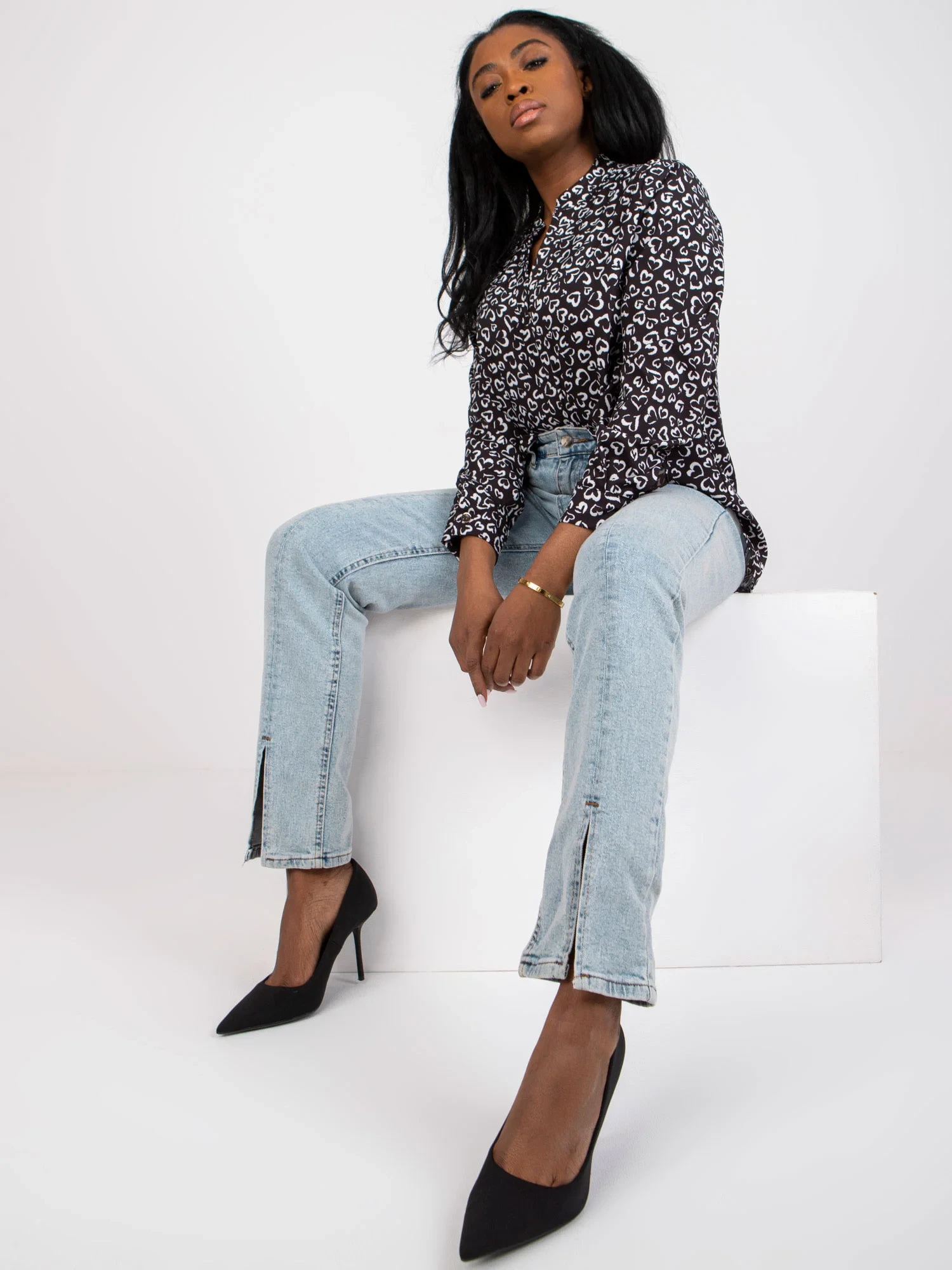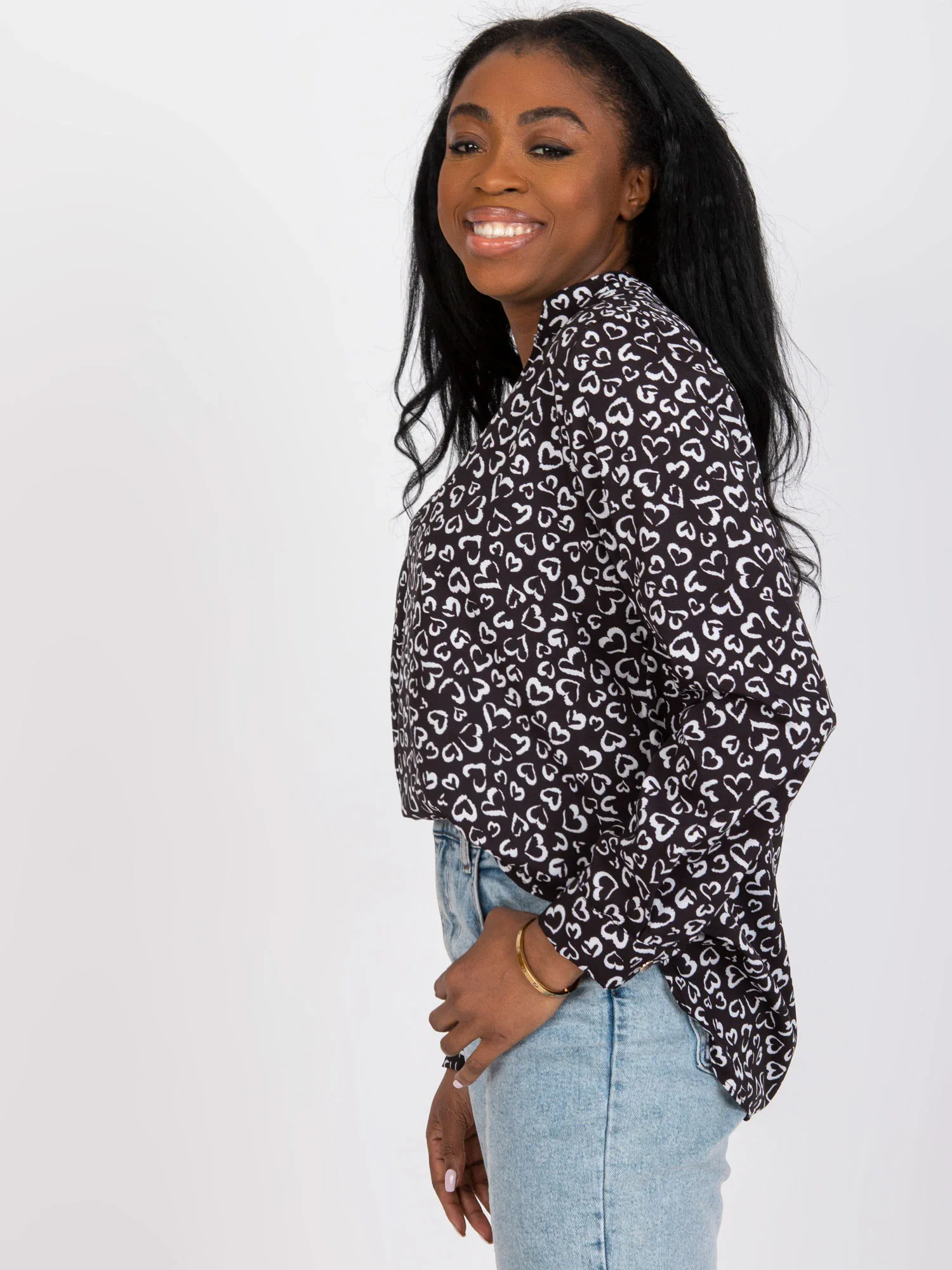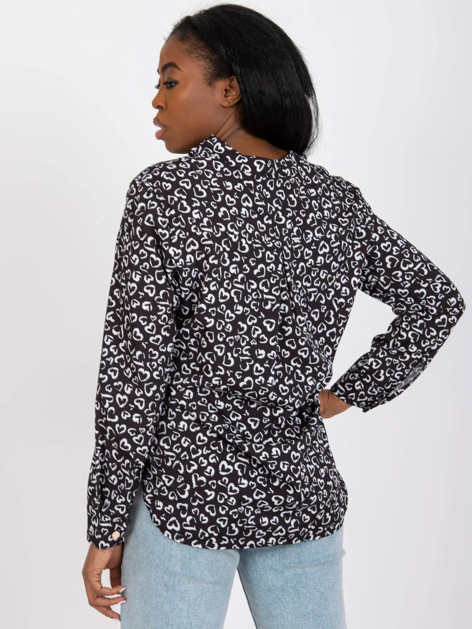 Rozměry halenky v jedné velikosti měřené na plocho: šířka v podpaží - 52 cm, celková délka (vpředu) - 67 cm, celková délka (vzadu) - 72 cm, délka rukávu - 58 cm.EAN čárové kódy zboží jsou: