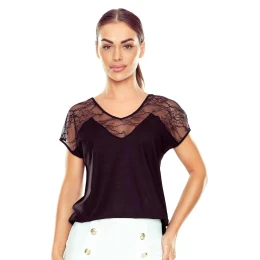 - výstřih a rukávy zdobí výrazná krajka s květinovým vzorem