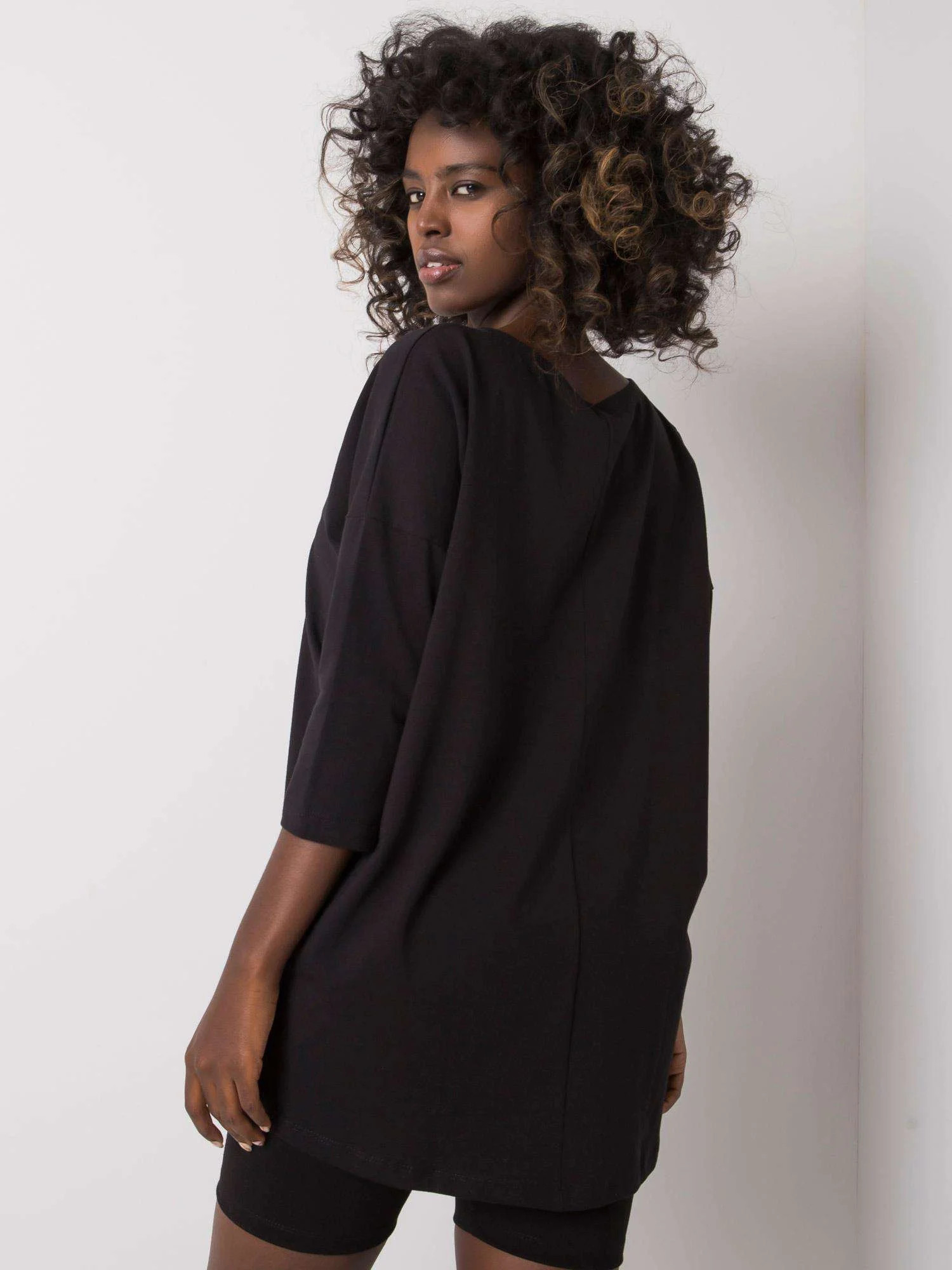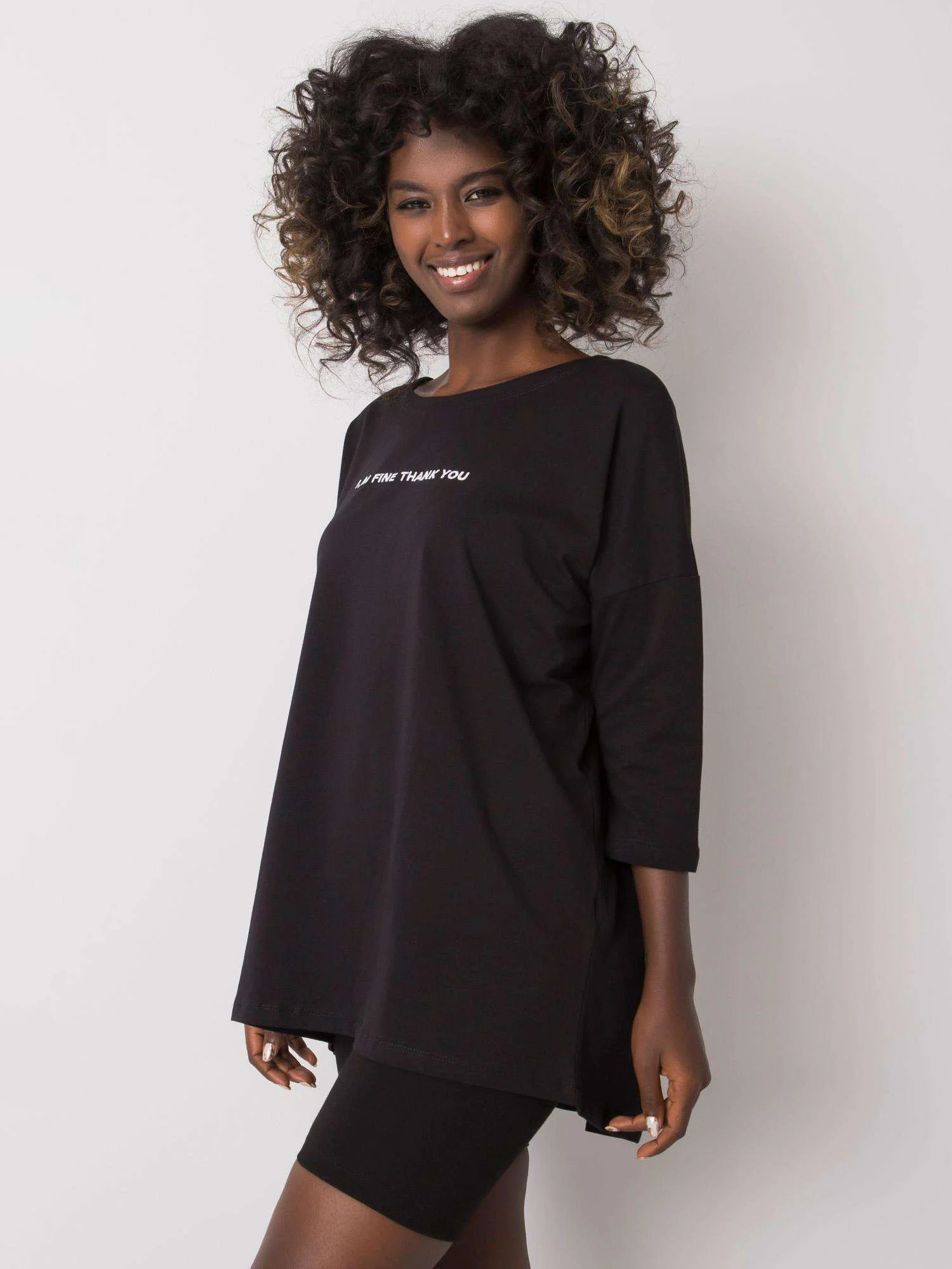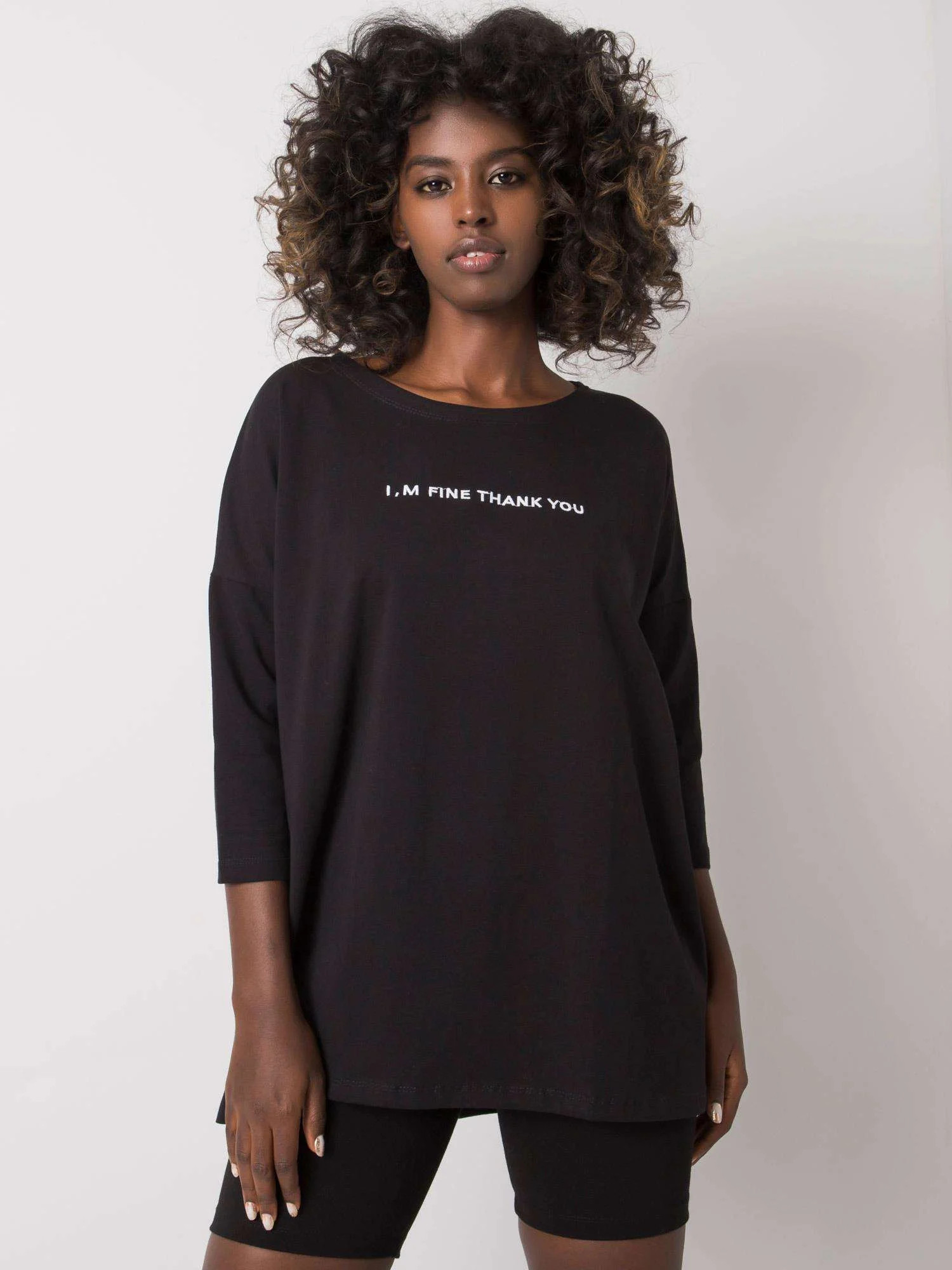Černá bavlněná halenka s nápisem.