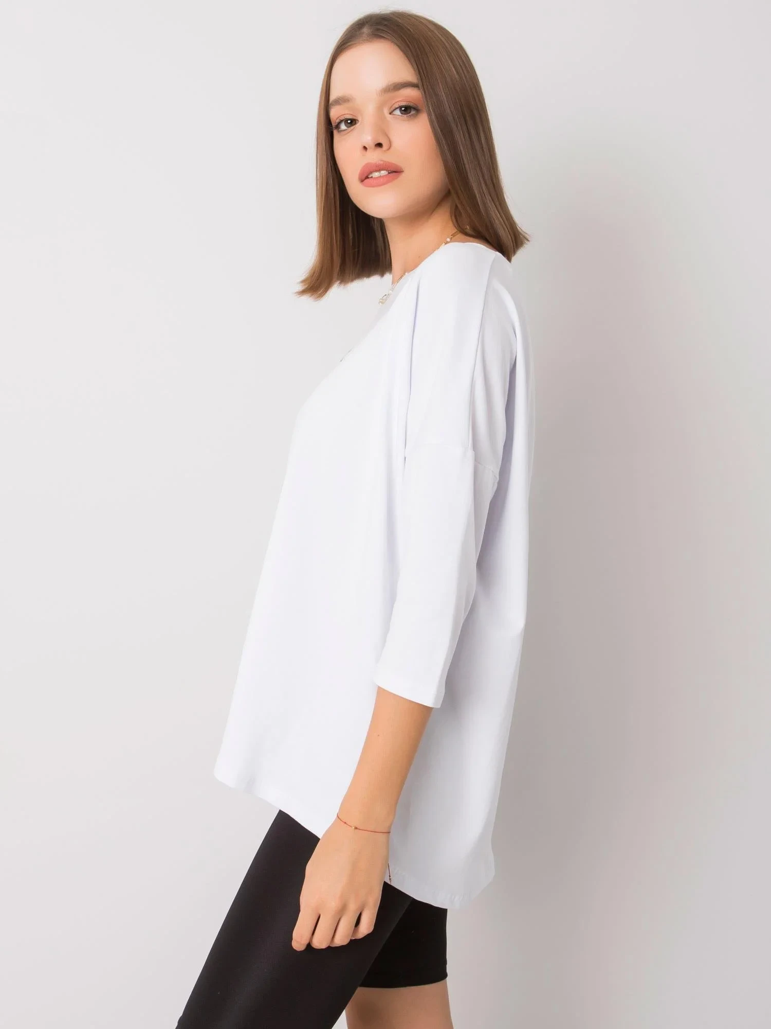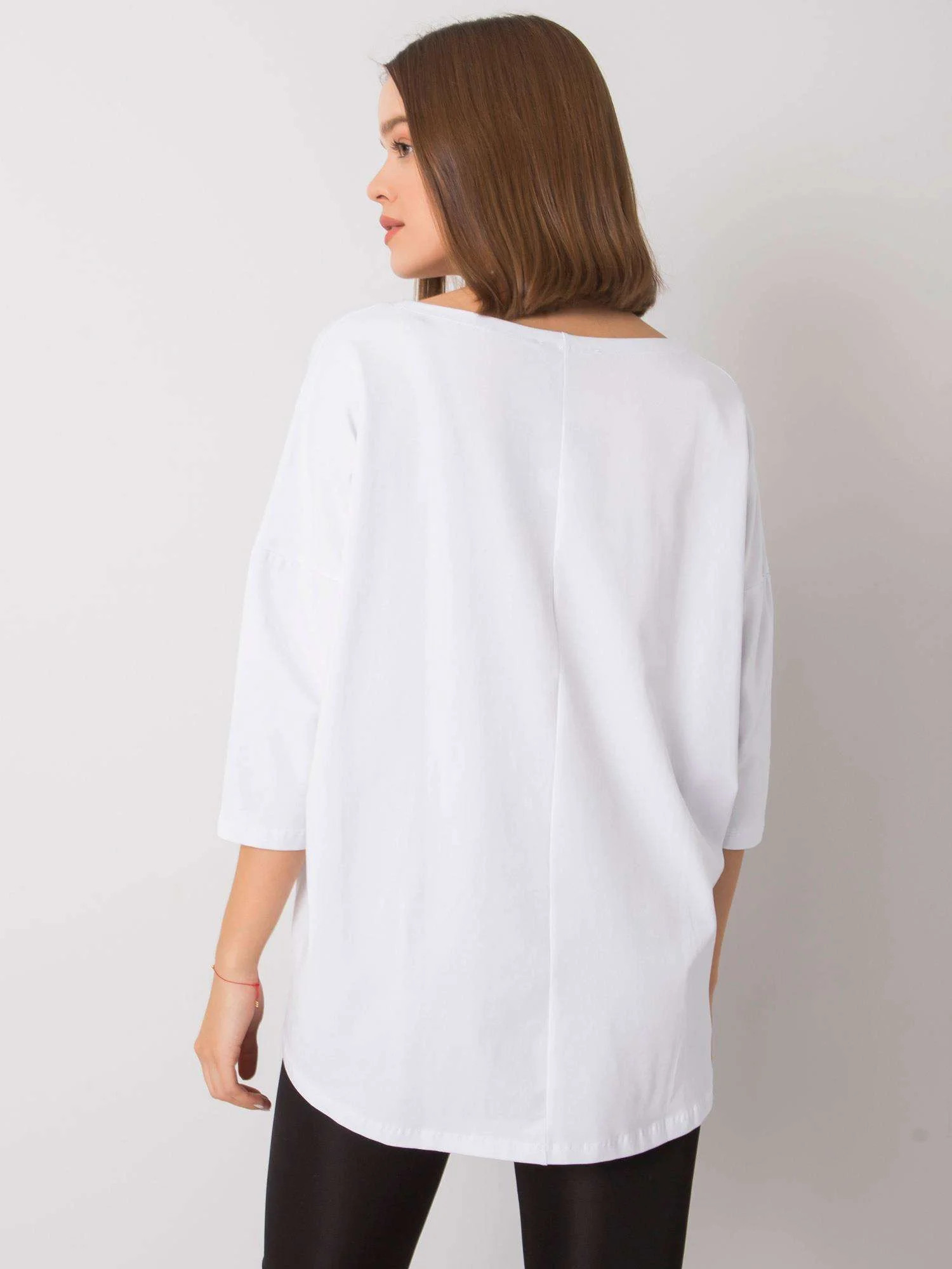 Bílá dámská halenka s nápisem.