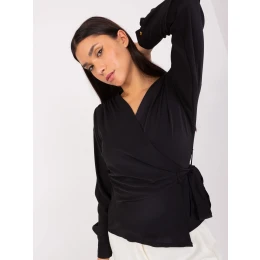 Černá společenská halenka s obálkovým výstřihem .