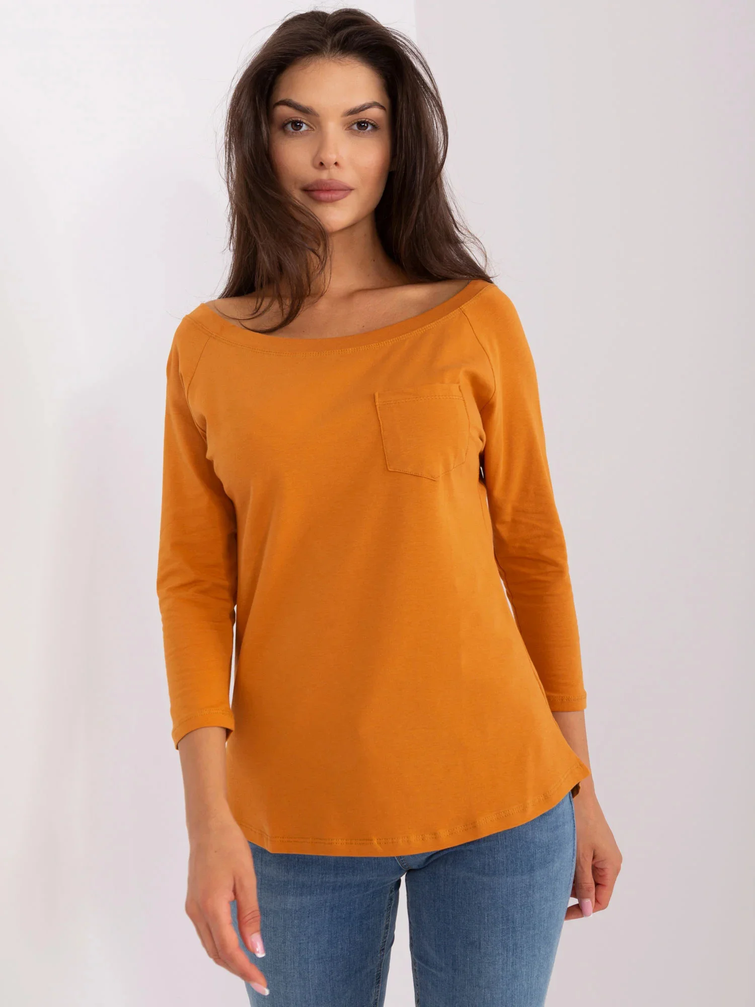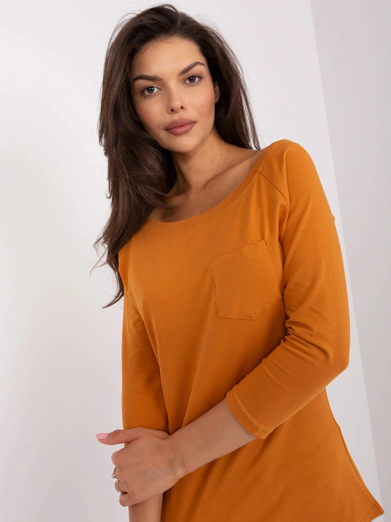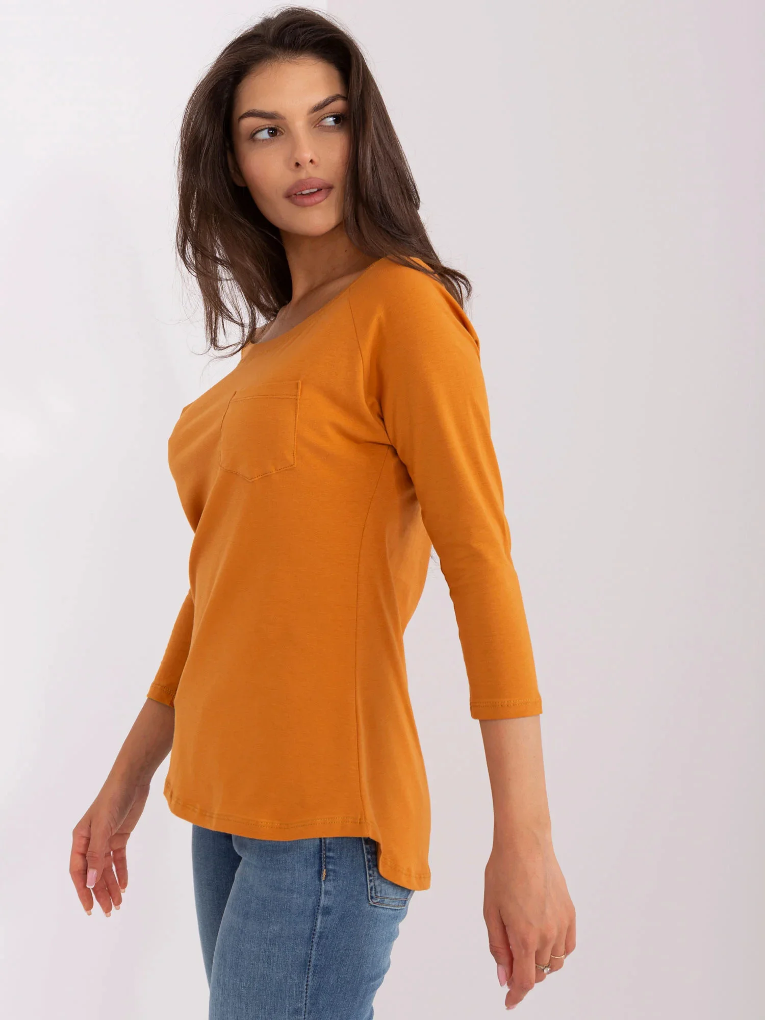 Tmavě oranžová halenka s 3/4 rukávy .