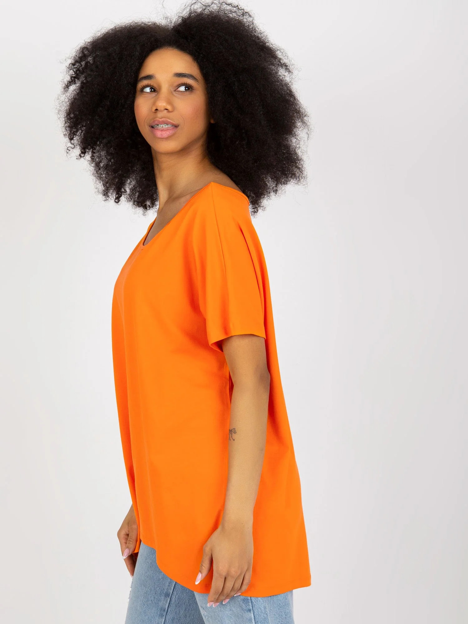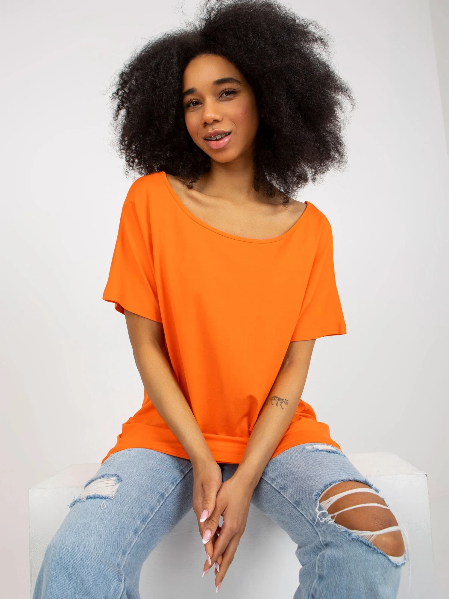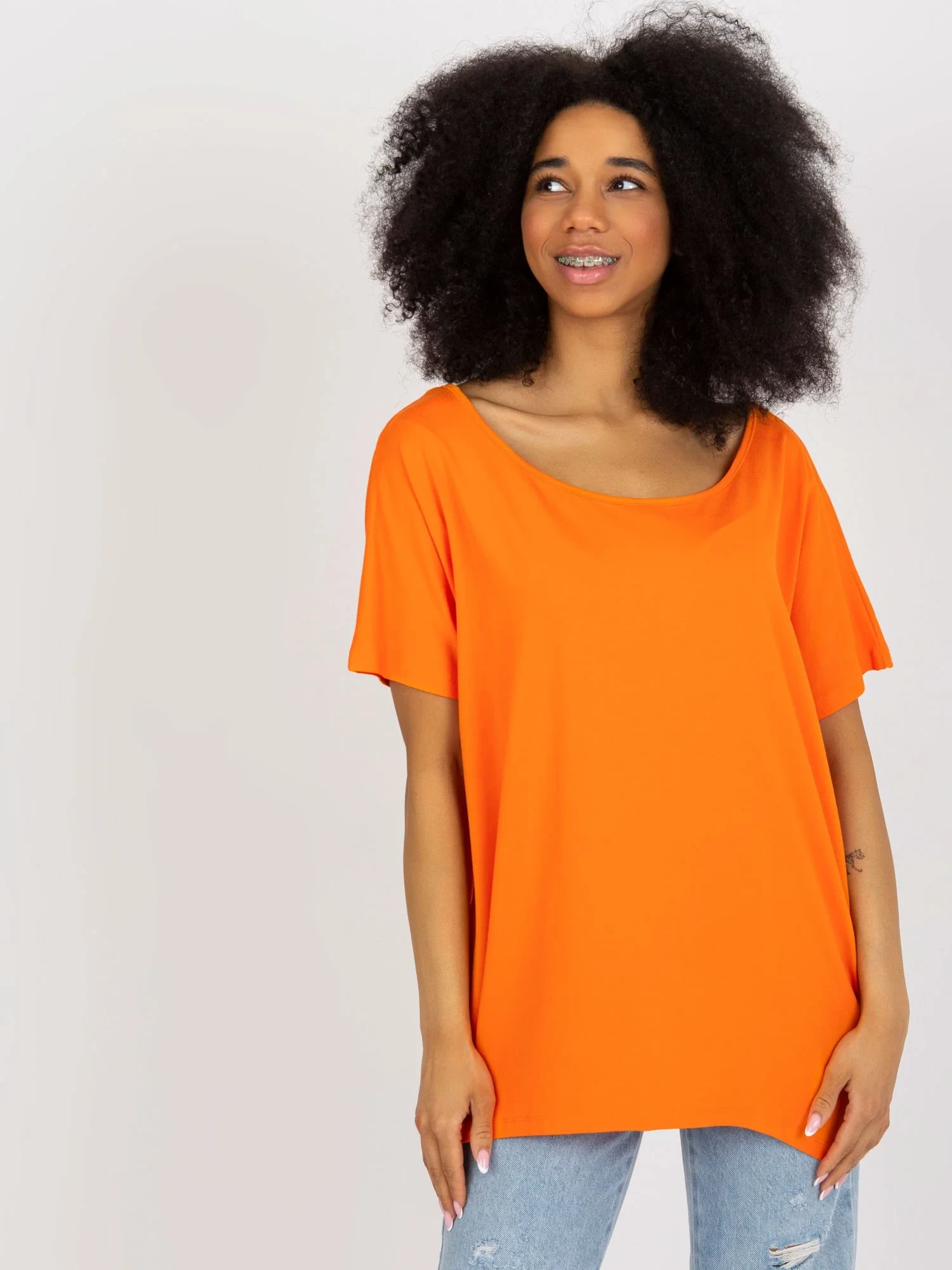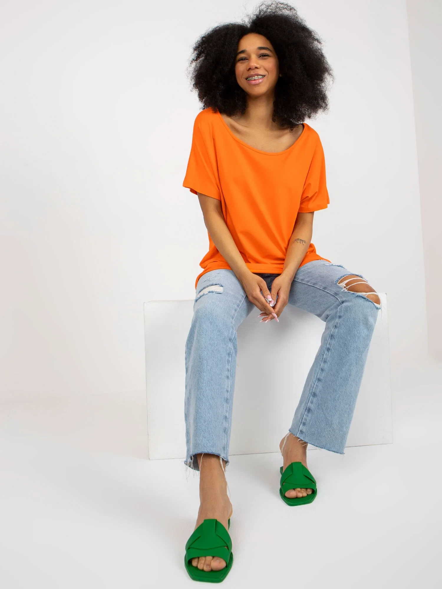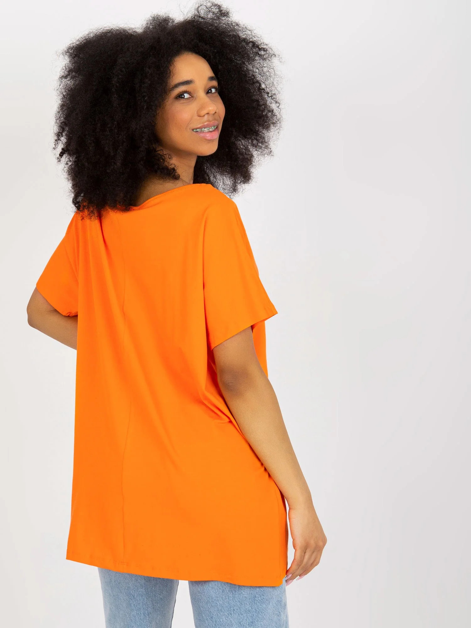 Modelka má na sobě jednu velikost. Rozměry modelky: výška 173 cm, poprsí 81 cm, pas 60 cm, boky 90 cm.