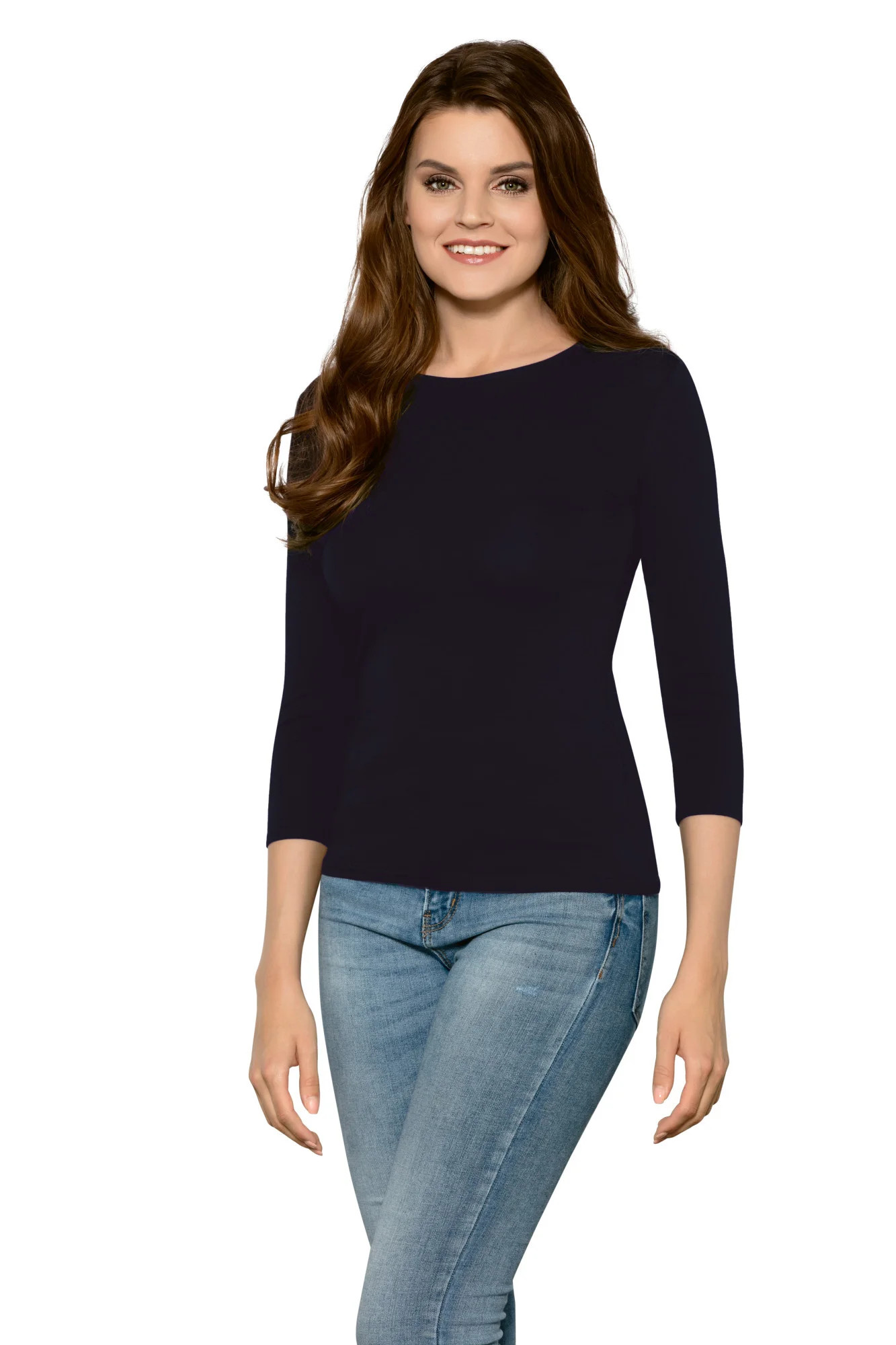 Tato všestranná halenka se dodává v různých barvách a je ideálním základem pro různé outfity, od ležérních, ideálních pro každodenní nošení, až po doplnění saka, když chcete jít do práce. Měkká bavlna vynikající kvality umožňuje, aby halenka měkce a příjemně seděla. Klasický výstřih, módní rukávy v délce 3/4. 94 % bavlna, 6 % elastan.