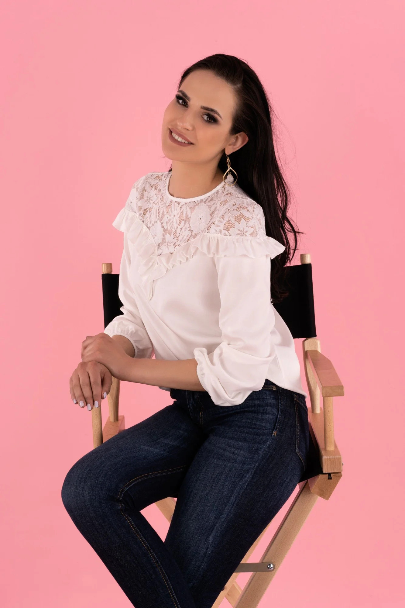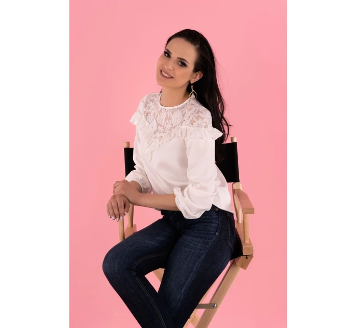 Elegantní halenka s dlouhými rukávy a krásným šněrovacím výstřihem ve španělském stylu. Hladká, velmi pohodlná, rukávy zakončené jemnou gumičkou. Halenka se hodí k elegantnímu i ležérnímu stylu. Složení: 100% hedvábí.