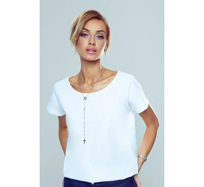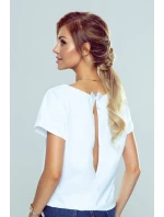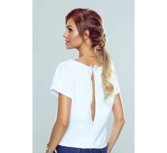 Okouzlující hladká halenka s krátkými rukávy a svůdným průstřihem na zádech. Top zvýrazněný sladkou saténovou mašličkou. Měkká a kvalitní tkanina. Složení: 95 % viskóza, 5 % elastan.
