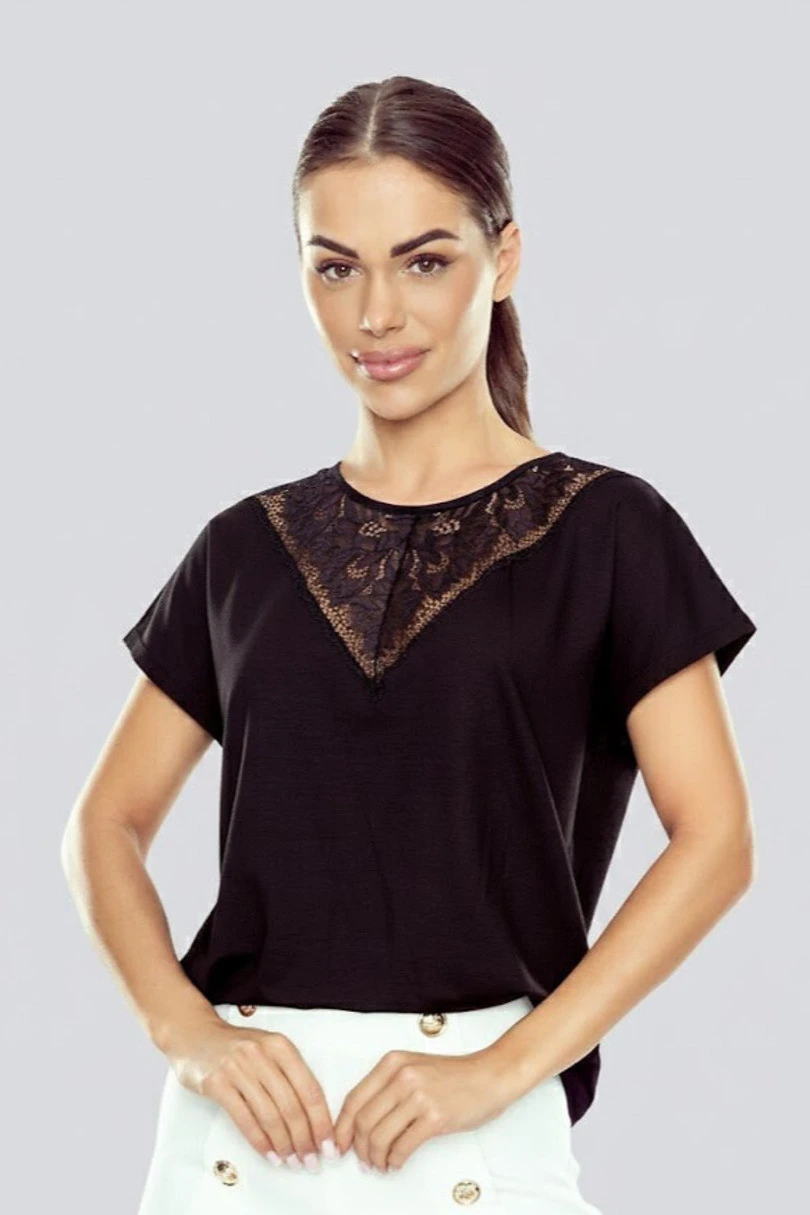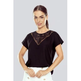 Bluzka damska Laurella z krótkim rękawem to elegancka propozycja, która łączy wygodę noszenia z kobiecym, stylowym wyglądem. Model został wykonany z wysokiej jakości miękkiej i elastycznej wiskozy, dzięki czemu doskonale układa się na sylwetce i zapewnia komfort przez cały dzień. Luźny, swobodny fason sprawia, że bluzka świetnie maskuje drobne niedoskonałości i pasuje do różnych typów sylwetek. Klasyczny okrągły dekolt został ozdobiony efektowną koronką o kwiatowym princie, która nadaje całości subtelnej elegancji i przyciąga wzrok. Krótkie rękawy czynią model Laurella idealnym wyboreEAN čárové kódy zboží jsou: