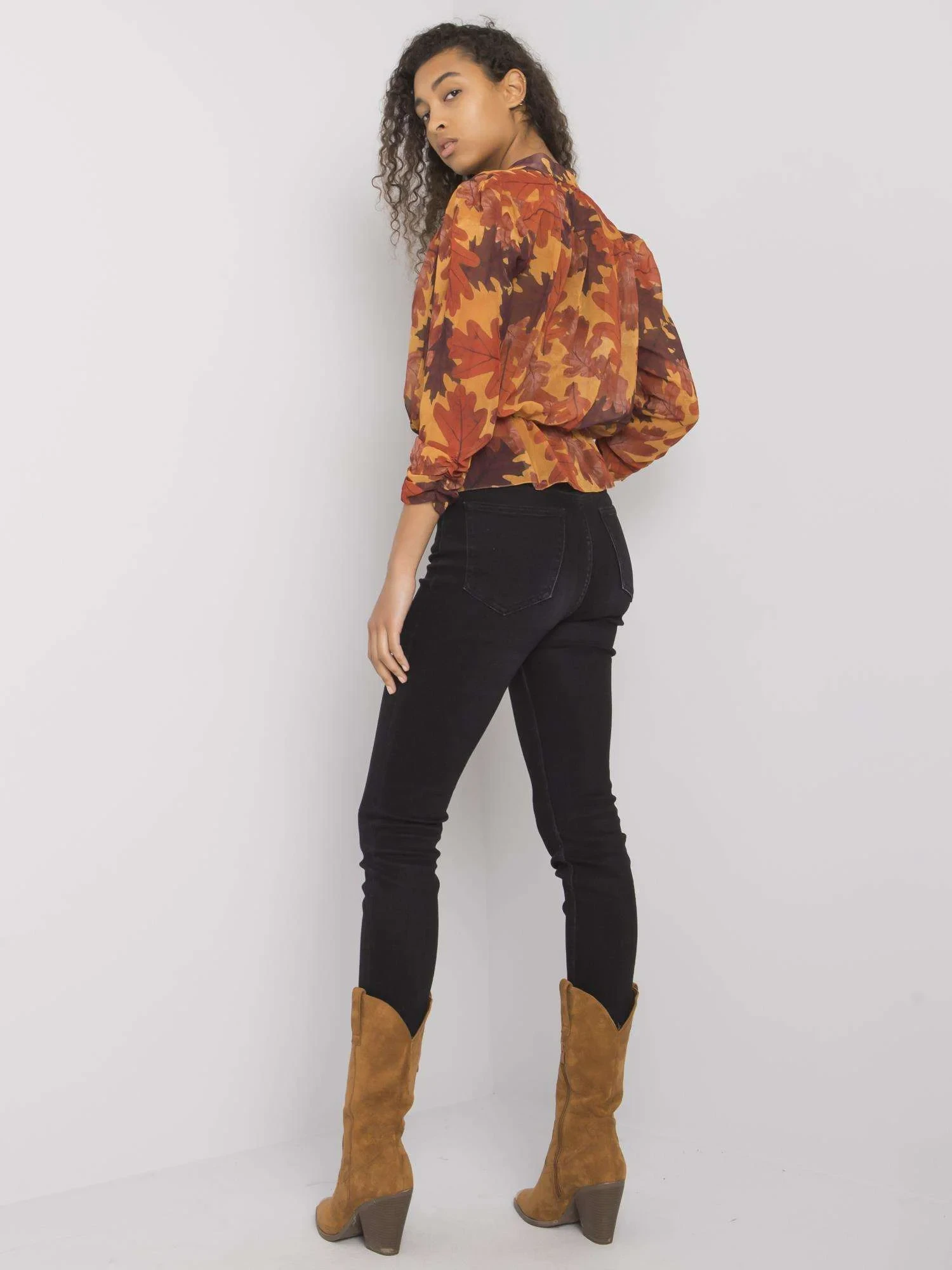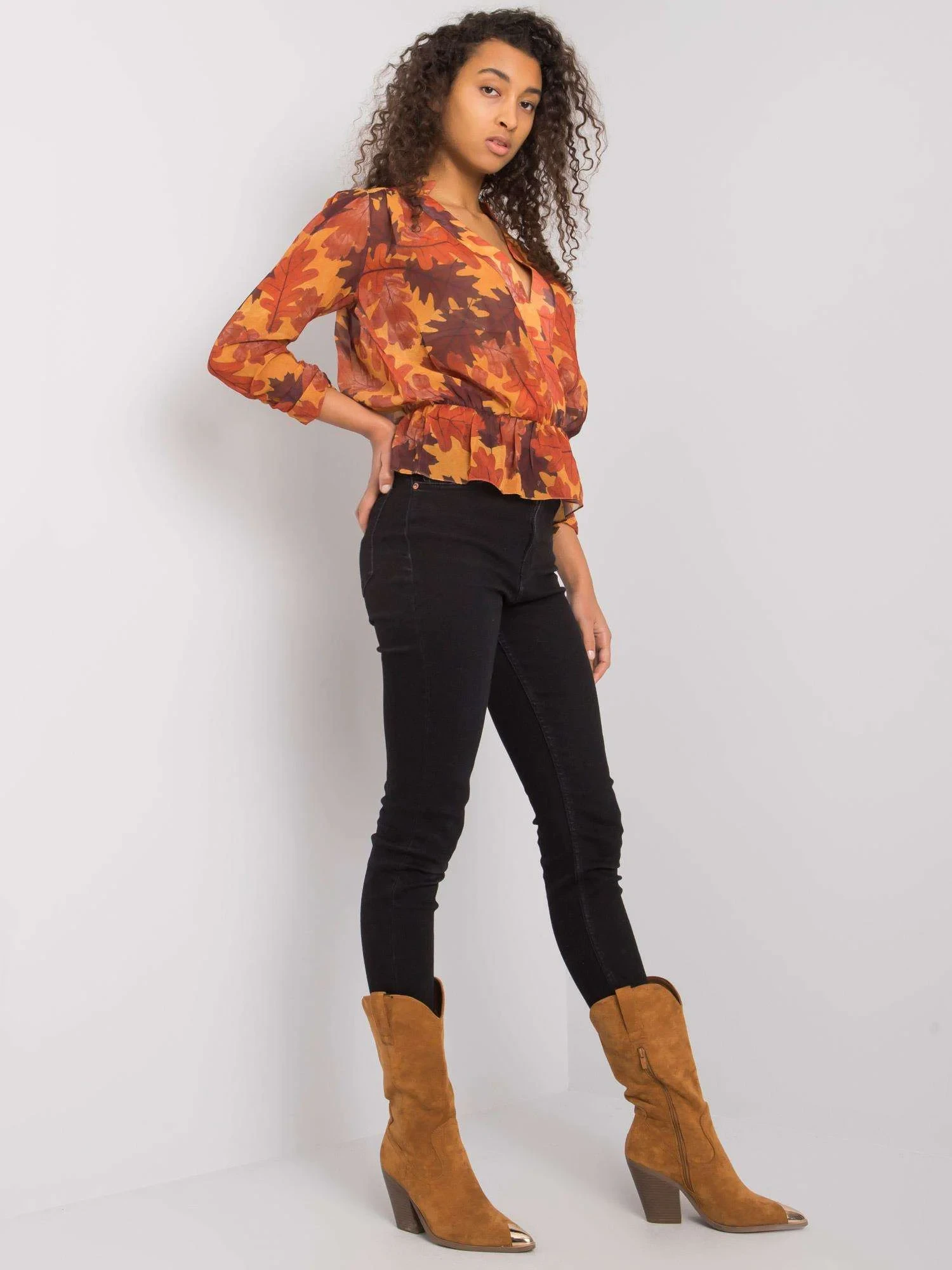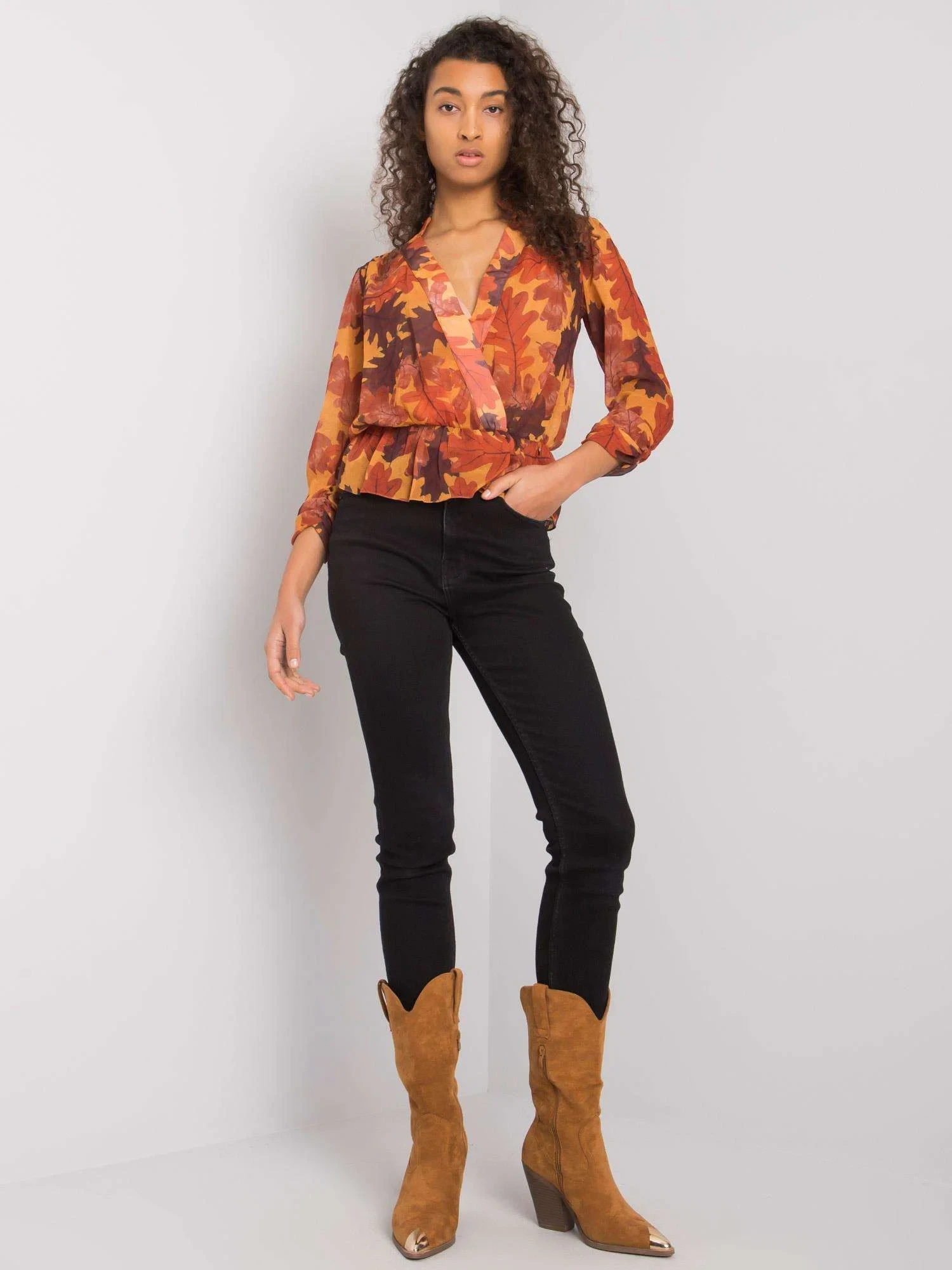 Modelka má na sobě velikost S. Rozměry modelky: výška 178 cm, prsa 82 cm, pas 61 cm, boky 88 cm.