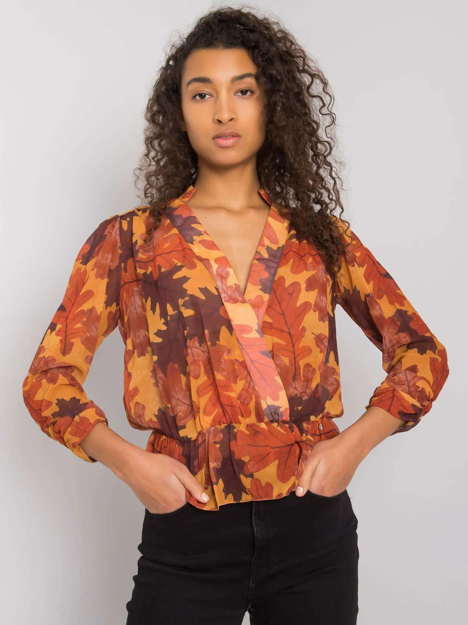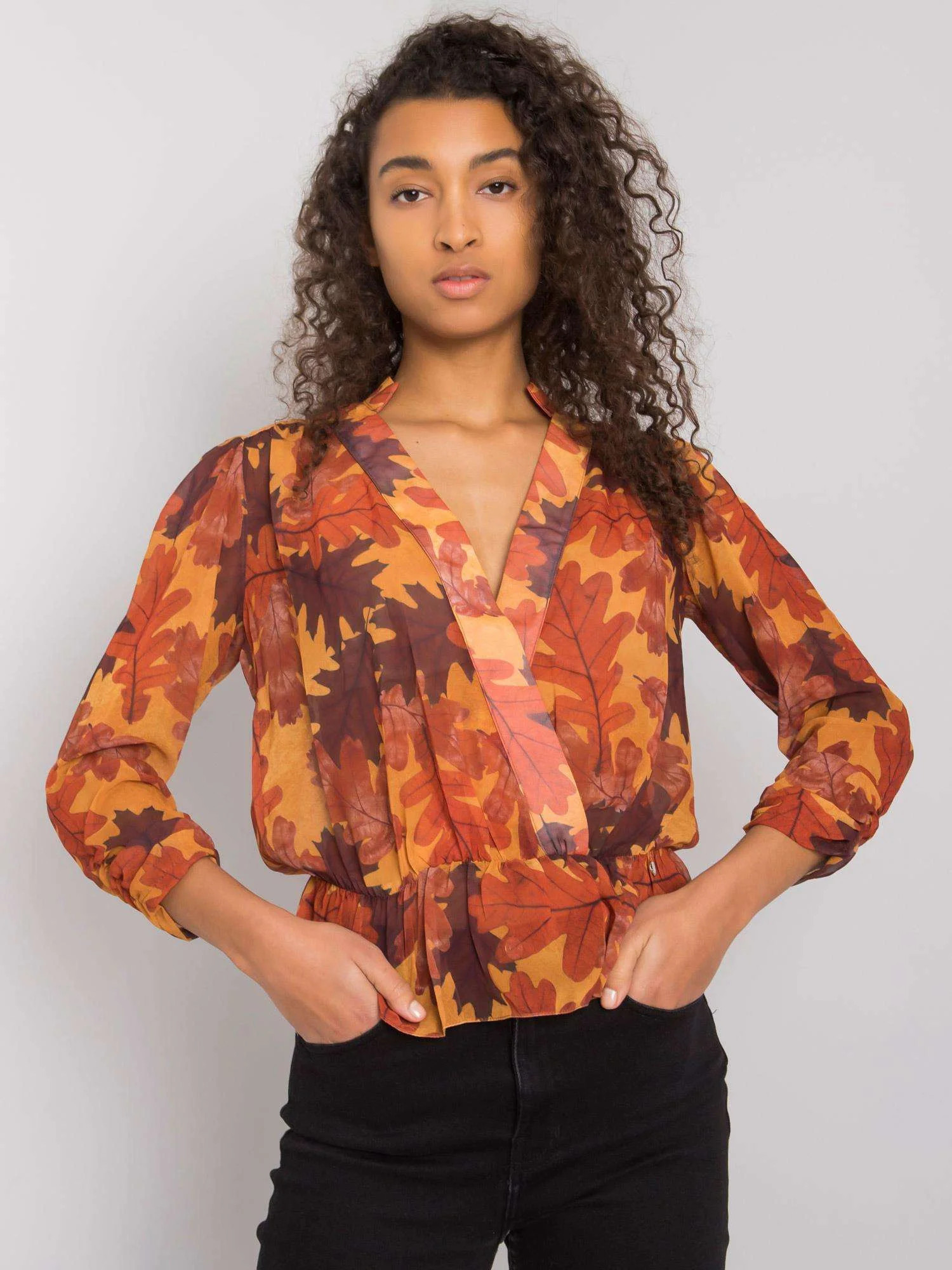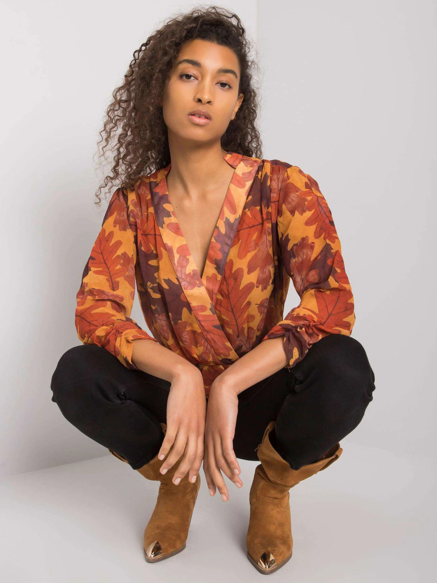 Modelka má na sobě velikost S. Rozměry modelky: výška 178 cm, prsa 82 cm, pas 61 cm, boky 88 cm.