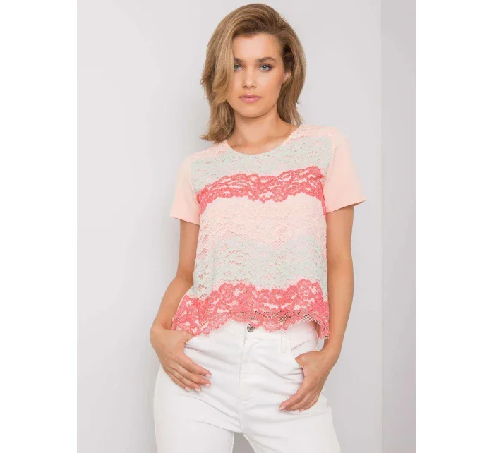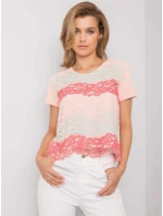 Broskvová a korálová krajková halenka.