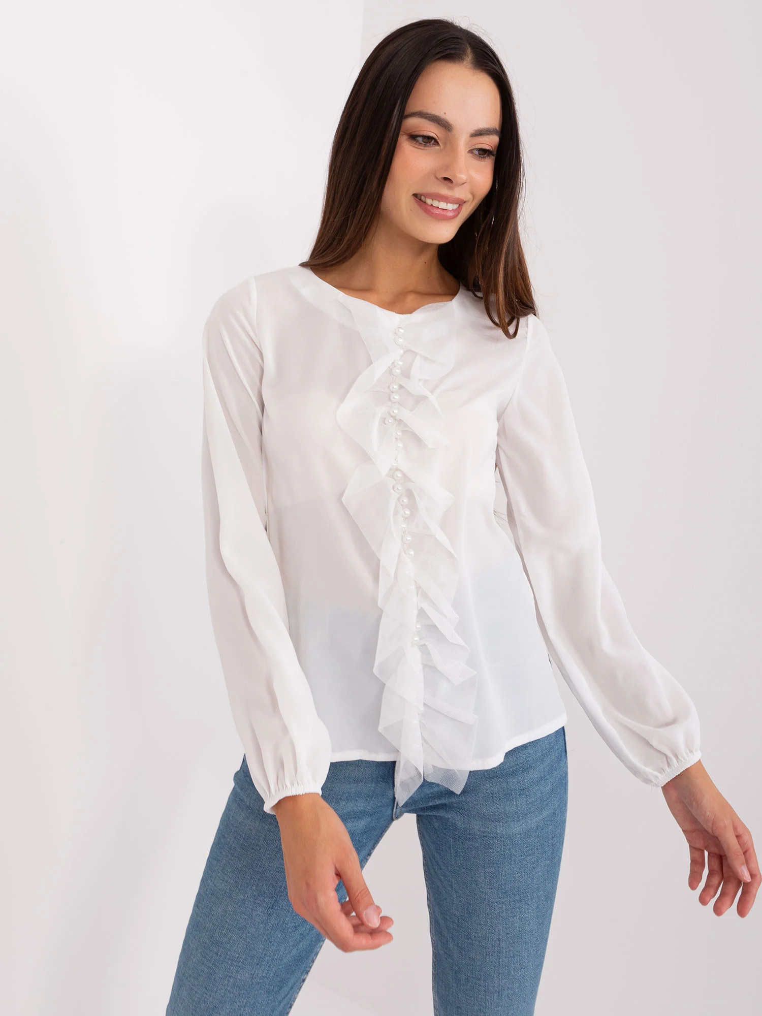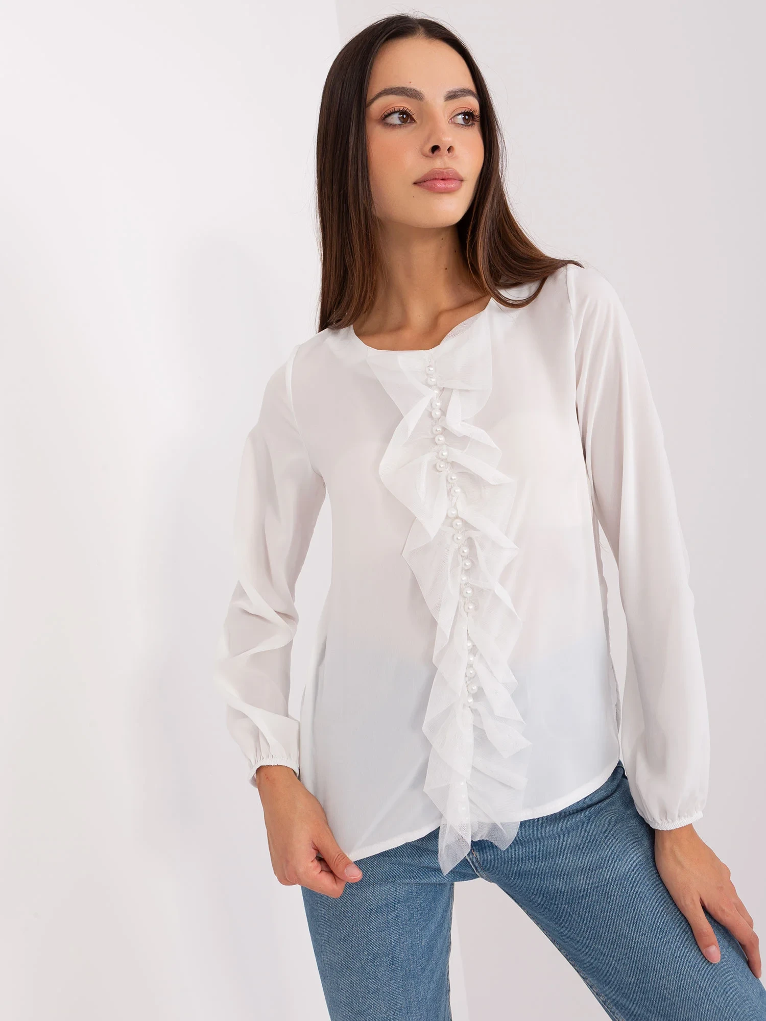 Dámská společenská halenka v barvě ecru s aplikací .