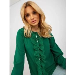 Tmavě zelená společenská halenka s perlami a síťovinou .