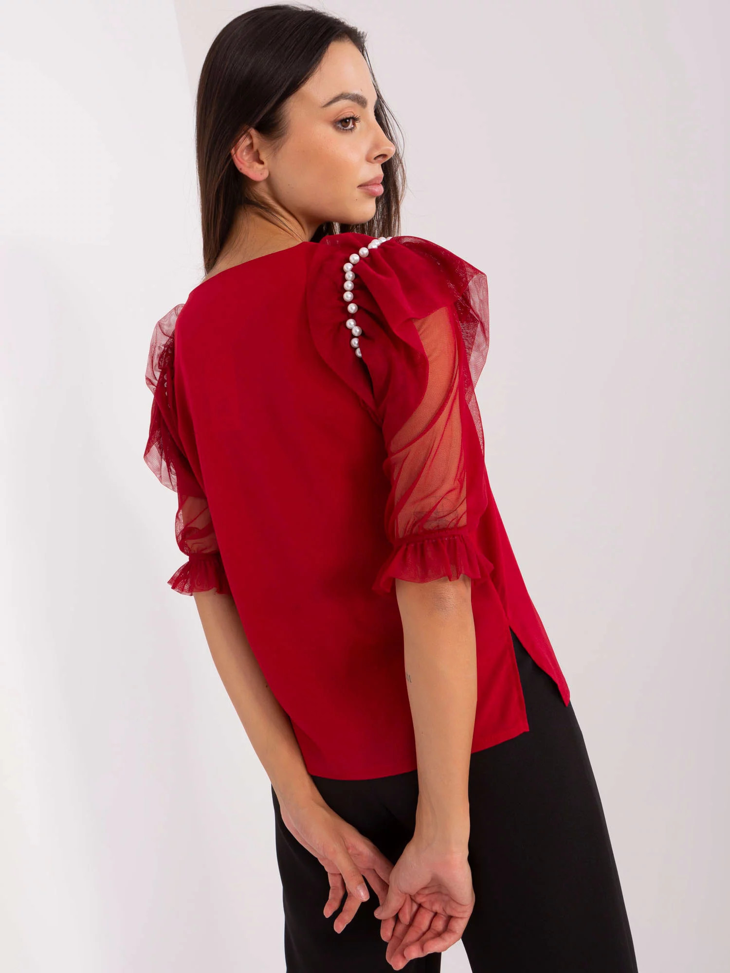 Rozměry halenky ve velikosti 36 měřené na plocho: šířka v podpaží - 50 cm, délka rukávu - 38 cm, celková délka - 59 cm.